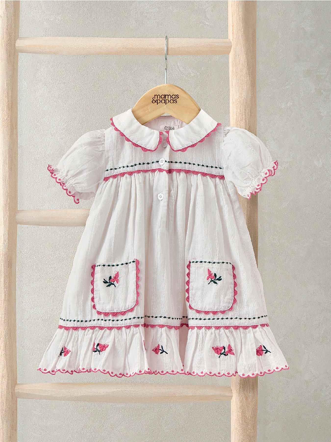 Mamas & Papas Baby Girls Collared Embroidered Dress - Pink Featuring Sweet, Thoughtful Details, This Embroidered Pink Dress Is A Beautiful Choice For Special Occasions And Sunny Getaways. Designed With Short Puff Sleeves, It Features Delicate Embroidery On The Patch Pockets And Frilled Hem, Along With Ric-Rac Trim At The Collar, Cuffs And Hem. Button Fastenings Run Down The Front, Making Dressing Easy. Material Content: Shell: 100% Cotton Lining: 100% Cotton Trim: 100% Polyester Washing Instructions: Machine Washable Girls' Pretty Collared Dress With Embroidery Detail Finished With Cute Ric-Rac Trim 100% Soft Cotton Lining For All-Day Comfort