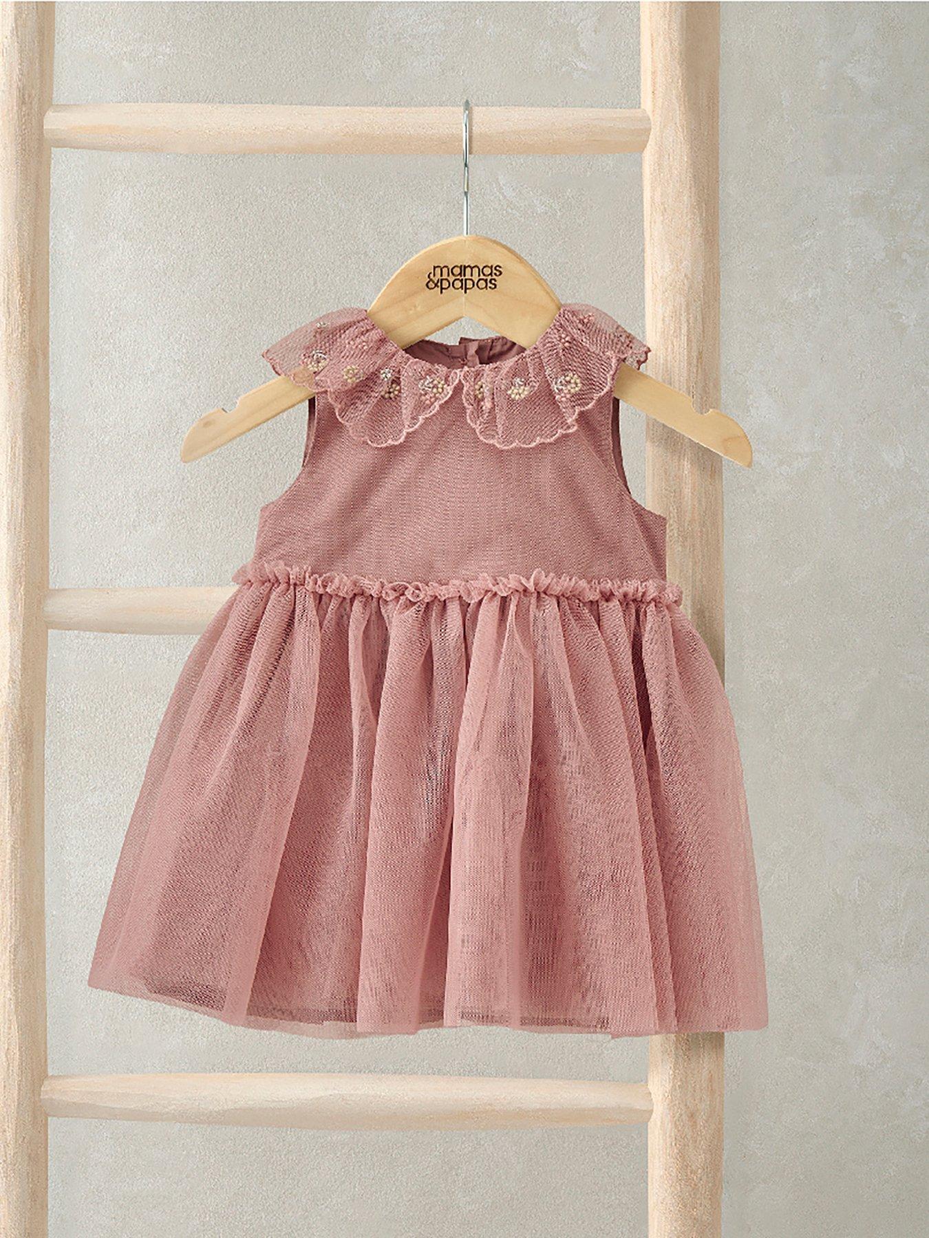 Mamas & Papas Baby Girls Floral Embroidered Collar Mesh Dress - Pink This Pretty Pink Tulle Dress Is Perfect For Special Occasions. Designed With A Sleeveless Silhouette, It Features An Embroidered Collar For A Sweet Finish And Button Fastenings At The Back For Easy Dressing, Making It A Lovely Choice For Dressier Days At Home Or Away. Material Content: Shell Mesh : 100% Nylon Lining : 100% Cotton Washing Instructions: Machine Washable Ideal Girls' Party Dress Pretty Embroidery Detail Back Button Opening For Easy Dressing