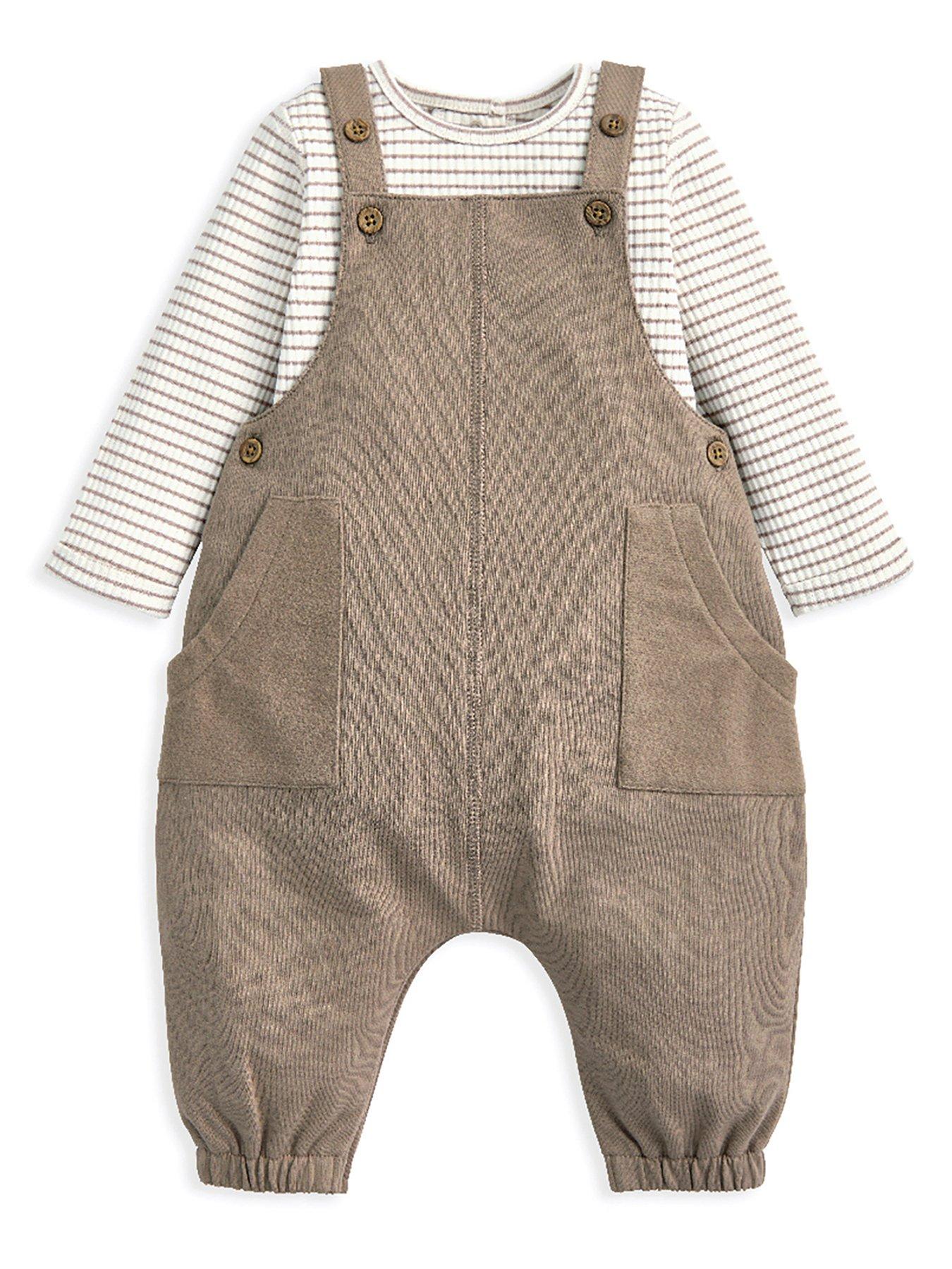 Mamas & Papas Baby Unisex 2 Piece Dungaree & Stripe Bodysuit Set - Brown This Soft Two-Piece Set Includes Comfy Dungarees With Adjustable Straps, Patch Pockets, And Easy Side-Button And Popper-Gusset Openings, Paired With A Coordinating, Long-Sleeved Striped Bodysuit With Popper Gusset Opening For Effortless Everyday Dressing. Material Content: Bodysuit: 95% Cotton 5% Elastane, Dungaree: 100% Cotton Washing Instructions: Machine Washable Comfy Everyday Wear Functional Openings For Easy Dressing And Changes Complete Outfit In One Handy Set