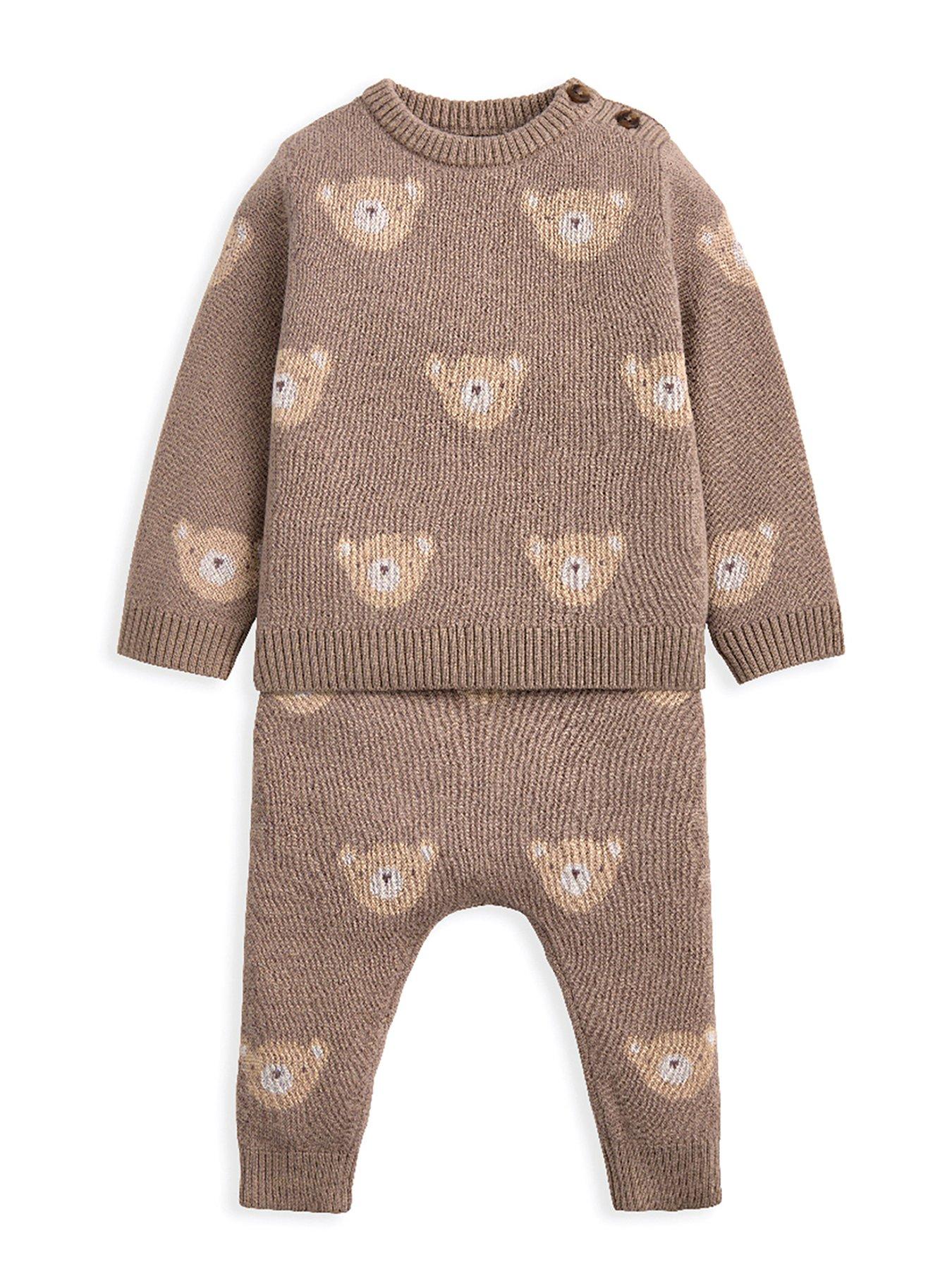 Mamas & Papas Baby Unisex 2 Piece Jacquard Bear Knitted Top & Bottoms Set - Brown - Size Age: 3-6 Months