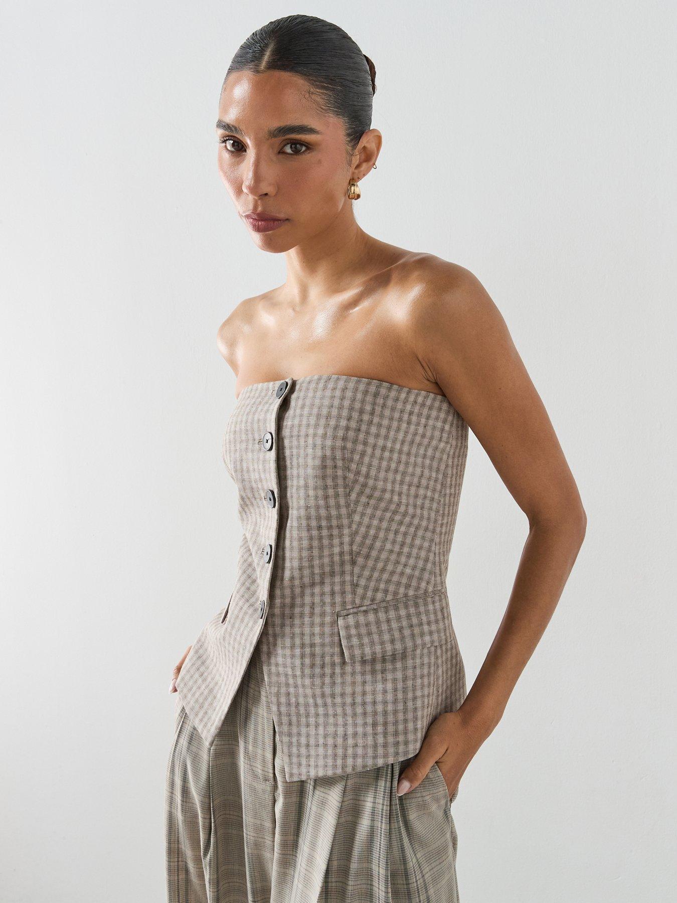 Mango Bandeau Co-Ord Top With Buttons - Pastel Grey Size & Fit True To Size - Order Your Usual Size Tailored Design Available In Sizes Xs - Xl (Xs:Uk 6, S:Uk 8, M:Uk 10, L:Uk 12, Xl:Uk 14) Model Is 5'9.5" And Wears A Uk Size 18 Details Bandeau Top With Buttons By Mango Pastel Grey Plaid Print Strapless Neckline Sleeveless 2 Side Pockets With Flaps Button Through Front Fastening
