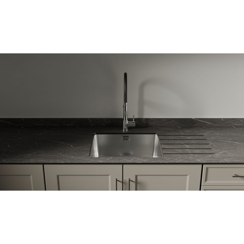 This Mariz R25 Sink Module is a pre-fabricated, ready-to-fit solution for your kitchen or workspace. The 12mm compact laminate features a sleek black core, giving your home a modern look. The module is slender in both design and shape, and is supplied with smooth, factory-machined edges, all finished by hand. This product is quicker for you to fit, saving time on installation. * Pre-fabricated and ready to fit – allows for quicker, hassle-free installation * 12mm compact laminate – provides a durable solution for your workspace needs * Sleek black core – gives your home a modern, contemporary look * Slender in design and shape – offers a streamlined aesthetic * Smooth factory machined edges – ensures a high-quality finish * Available in a choice of colours, sink types, and handings The manufacturer provides a 10 Year Manufacturers Guarantee. | Mariz Surface R25 Super Sink Module LB Worktop 3050 x 640 x 12mm in Vena Black