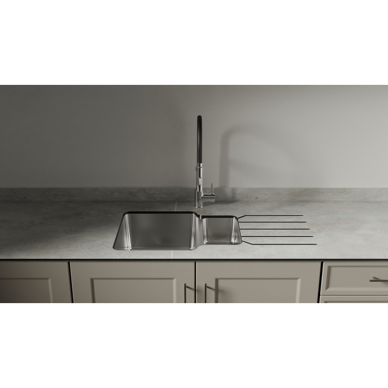 This Mariz R25 Sink Module is a pre-fabricated, ready-to-fit solution for your kitchen or workspace. The 12mm compact laminate features a sleek black core, giving your home a modern look. The module is slender in both design and shape, and is supplied with smooth, factory-machined edges, all finished by hand. This product is quicker for you to fit, saving time on installation. * Pre-fabricated and ready to fit – allows for quicker, hassle-free installation * 12mm compact laminate – provides a durable solution for your workspace needs * Sleek black core – gives your home a modern, contemporary look * Slender in design and shape – offers a streamlined aesthetic * Smooth factory machined edges – ensures a high-quality finish * Available in a choice of colours, sink types, and handings The manufacturer provides a 10 Year Manufacturers Guarantee. | Mariz Surface R25 Universal Sink Module LH Worktop 3050 x 640 x 12mm in Light Concrete