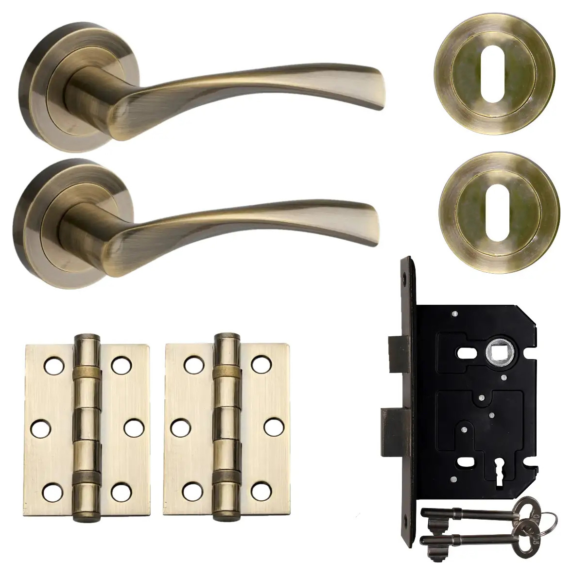 Marvel Lever on Rose Antique Brass Sashlock Door Pack - With multiple home and commercial applications, the Marvel handle features a mortice lock for rooms where security is required. Created for performance and aesthetic appeal, the high quality lever and rose design offers strength and outstanding durability.