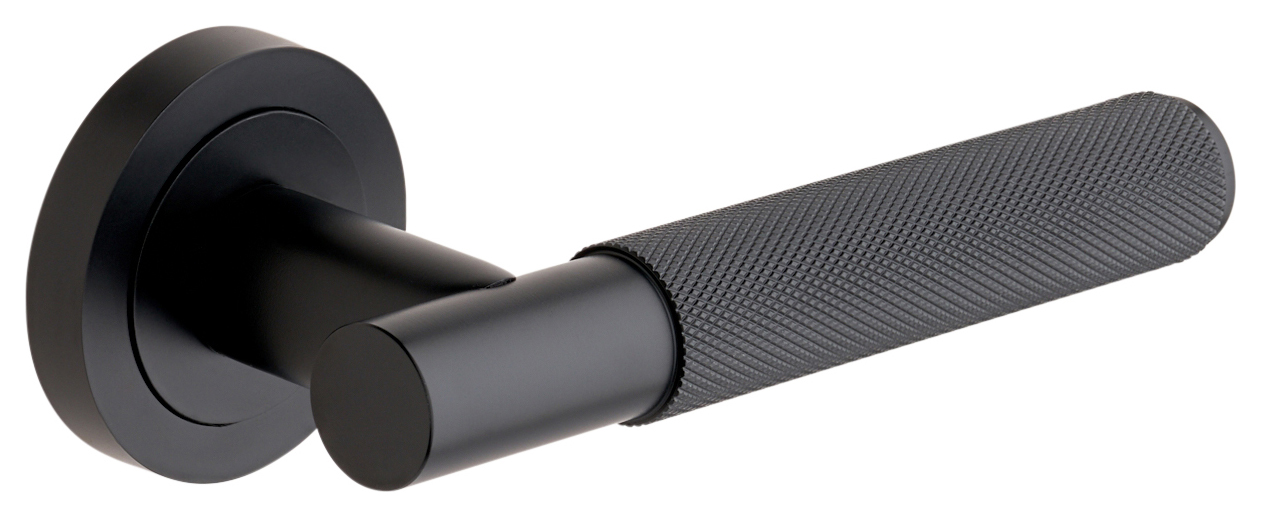 Marylebone Lever on Rose Matt Black Knurled Door Handle - 1 Pair