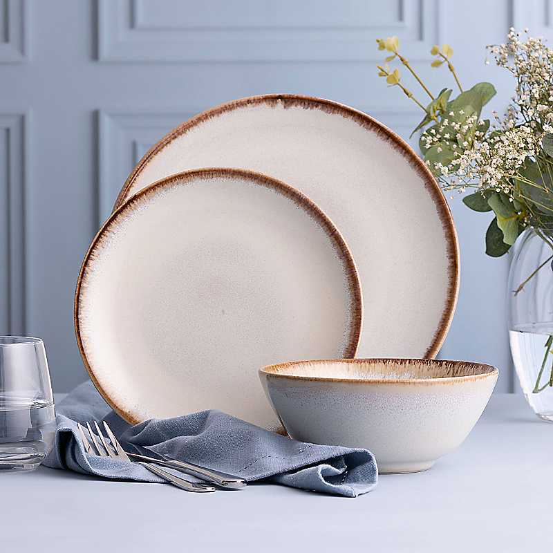 The Mason Cash Reactive Collection dinnerware is made from fine durable stoneware, making it practical for everyday use. Produced using a reactive glaze finish, the tableware has a timeless sophistication that will look stylish on the dining table. Due to the unique artisan feel of the reactive glaze, each piece will be individual in colour and pattern. The dinner set will consist of 4 dinner plates, 4 side plates and 4 bowls. Mason Cash was established in the heart of the English ceramic industry back in 1800 and has become world renowned for its innovative, classic kitchenware today. 12 Piece Set 4 x Dinner plates, 4 x Side plates & 4 x Bowls Stoneware Microwave Safe, Dishwasher Safe Plate size approx. 26 x 26 x 3 cm Side plate size approx. 20 x 20 x 3 cm Bowl size approx. 17 x 17 x 8 cm