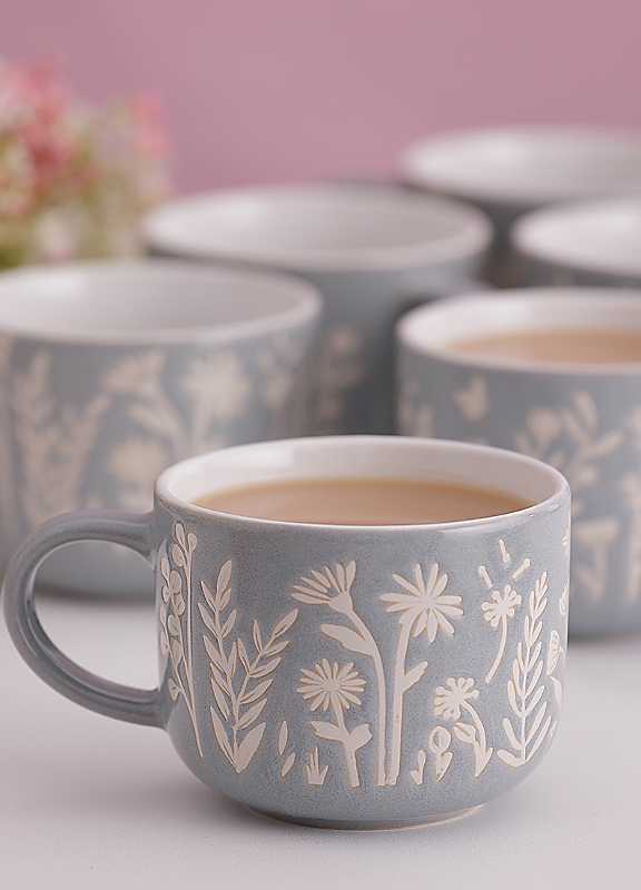 With a beautiful reactive glaze and wax resist technique, the In the Meadow Blue stoneware mug adds style to coffee or tea time. The rounded shape fits snugly in the hands making it the ideal mug for comforting hot drinks. Set of 2 Capacity: 400ml Microwave & dishwasher safe Stoneware Dimensions approx. 8 x 10 x 10 cm | cute mugs, stoneware coffee mugs, cute coffee mugs, aesthetic coffee mugs, aesthetic mugs, clay mugs, blue coffee mugs, coffee mugs, coffee mug sets, floral mugs, tea mugs