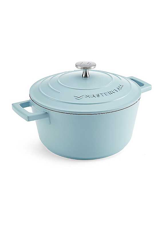 This lightweight Cast Aluminium casserole dish offers all the benefits of cast iron but is extremely lightweight and easy to handle. Perfect for everyday cooking, the pot features a non-stick double layer that gives this pan impressive toughness and durability. Aluminium makes a great heat conductor, so your favourite recipes cook evenly and develop flavour quickly. It's combined with a stainless steel base that allows for use on any hob, including induction, and can be put in the oven too. Cook hearty soups, aromatic Thai curries and braised beef, and thanks to the non-stick coating, you don't need as much oil, which is ideal for reducing your calorie intake. The casserole dish features a knob and two handles to make it easier to move the pot from stovetop to oven and includes a self-basting lid that allows making delicious meals without having to check and baste by hand constantly. Easy to clean, this casserole dish can be rinsed with warm soapy water or put into the dishwasher to leave it spotless. Available in an ample chromatic variety, you can choose any colour you'd like - Black, lavender, mint green, metallic blue, hunter green, and grey ombre. New in stock red, cream and sky blue. Select from 2.5L (4.5 pints, 85 fl oz), 4L (7 pints, 135 fl oz) or 5L (8.5 pints, 169 fl oz) pots and build your own cookware set. Confident enough about the quality of its cookware, MasterClass is offering a Lifetime Guarantee with a Five Year Non-Stick Guarantee.Capacity: 2.5LDishwasher safeAluminiumSize approx. 16 x 21 x 27.8 cm
