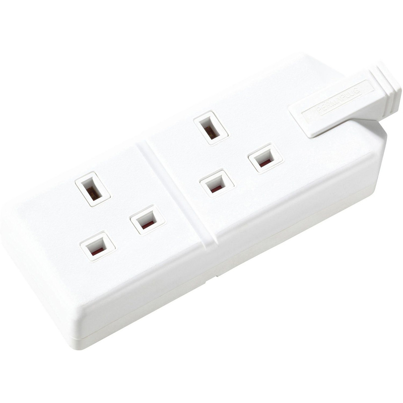 Masterplug Heavy Duty Rewireable Trailing Socket 2 Gang, in White | Plastic