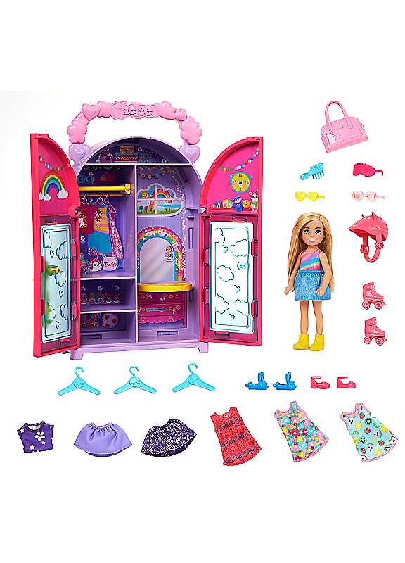 It's time to get ready with Chelsea doll! Open up this closet playset to reveal a dreamy wardrobe packed with 15 pieces of clothes and accessories. Mix and match outfits to create four complete looks! With fun pieces like dresses, a kitty bike helmet, heart-shaped sunglasses, bunny slippers, and a sleep mask -- kids can dress Chelsea doll from morning to night! Doll cannot stand alone. Colours and decorations may vary.3+Not suitable for children under 3 years of age