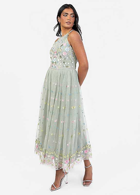 Maya Deluxe Floral Embroidered Halter Neck Midaxi Dress - Green - Size 18