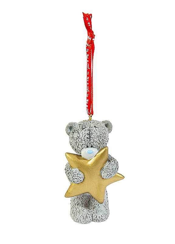This adorable little Christmas tree decoration features Tatty Teddy holding a huge gold Christmas star. Crafted from resin and finished with stunning detail, this beautiful decoration is threaded with a red satin Me to You ribbon for simple hanging on the Christmas tree or anywhere around the home. It's one of three co-ordinating Tatty Teddy hanging ornaments - collect all three for your tree and enjoy a cute Christmas year after year!Crafted with love and care from premium materials, Me to You gifts add a touch of festive fun at this magical time of the year. | hanging decorations, bear christmas ornaments, teddy bear christmas ornaments, resin ornaments