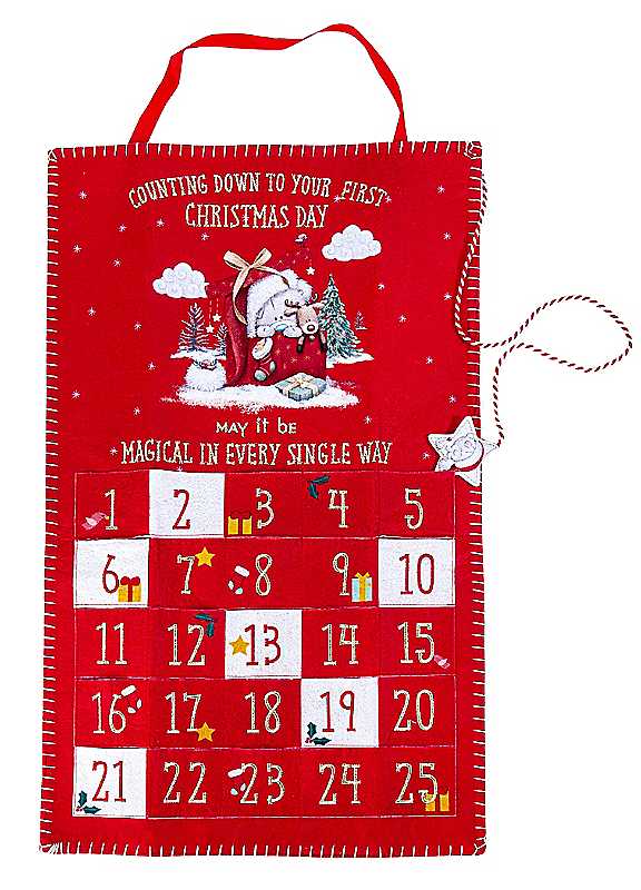 Count down to baby's first Christmas with this adorable hanging advent calendar featuring Tiny Tatty Teddy. Created in soft red felt with a natural wooden hanging pole, it's simple to display and makes a festive addition to any room as you decorate your home for Christmas. Your little one is sure to enjoy cuddling up close as you move the felt star each day to mark the magical run-up to Christmas Day.