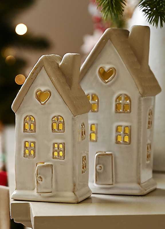 The Christmas Gift Co. is proud to showcase our 'Country Christmas' range. This collection exudes a cosy and rustic charm that perfectly captures the warmth of the season in a snug retreat in the country.Introducing our delightful Medium Ceramic LED House. With its quaint heart-shaped window and multiple front windows, it's a charming addition to any festive home.Ceramic construction for a rustic feelIntegrated LED lights to create a warm glowHeart-shaped window adds a touch of whimsyCeramicDimensions approx. 6D x 17W x 8H cm