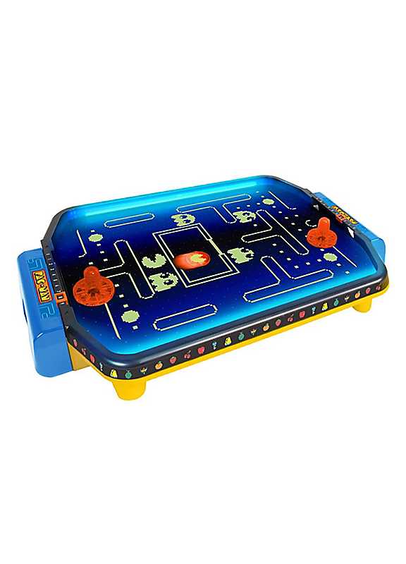 Bring the arcade fun home with the Pac-man arcade air hockey table, exclusively at menkind! This compact yet exciting setup delivers fast-paced action with vibrant Pac-man-themed design that glows in the dark. Perfect for players aged 6 and up, the high-powered airflow ensures the puck slides smoothly across the surface for thrilling, high-speed matches. The set includes everything you need to get started: the air hockey table, two goal nets, two pucks, two pushers, and sticker sheets to personalize your game. Simply pop in 6 c batteries (not included) and you're good to go no cords or outlets required! Whether you're looking for a fun game night or a unique addition to your game room, the Pac-man arcade air hockey table brings nostalgia and excitement to any space. It's the perfect way to relive the classic arcade experience and create endless hours of fun with friends and family!