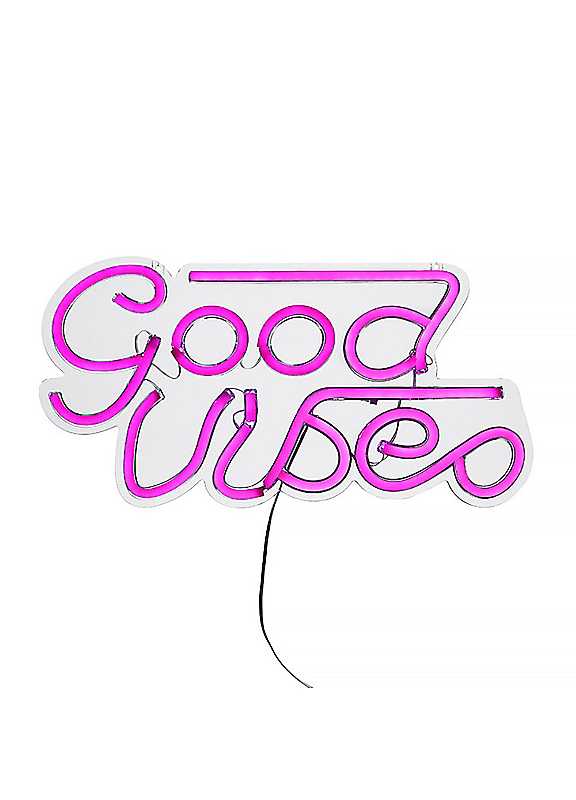 Spread positive energy with the good vibes neon light! Made from durable LEDs, this light is not only long-lasting but also less breakable than traditional neon. Its vibrant glow will energize your room, adding a fun and funky touch. Mount it easily to any wall, and power it via USB . Ideal for anyone looking to brighten their space with good vibes, this light will be a conversation starter in your home or dorm.