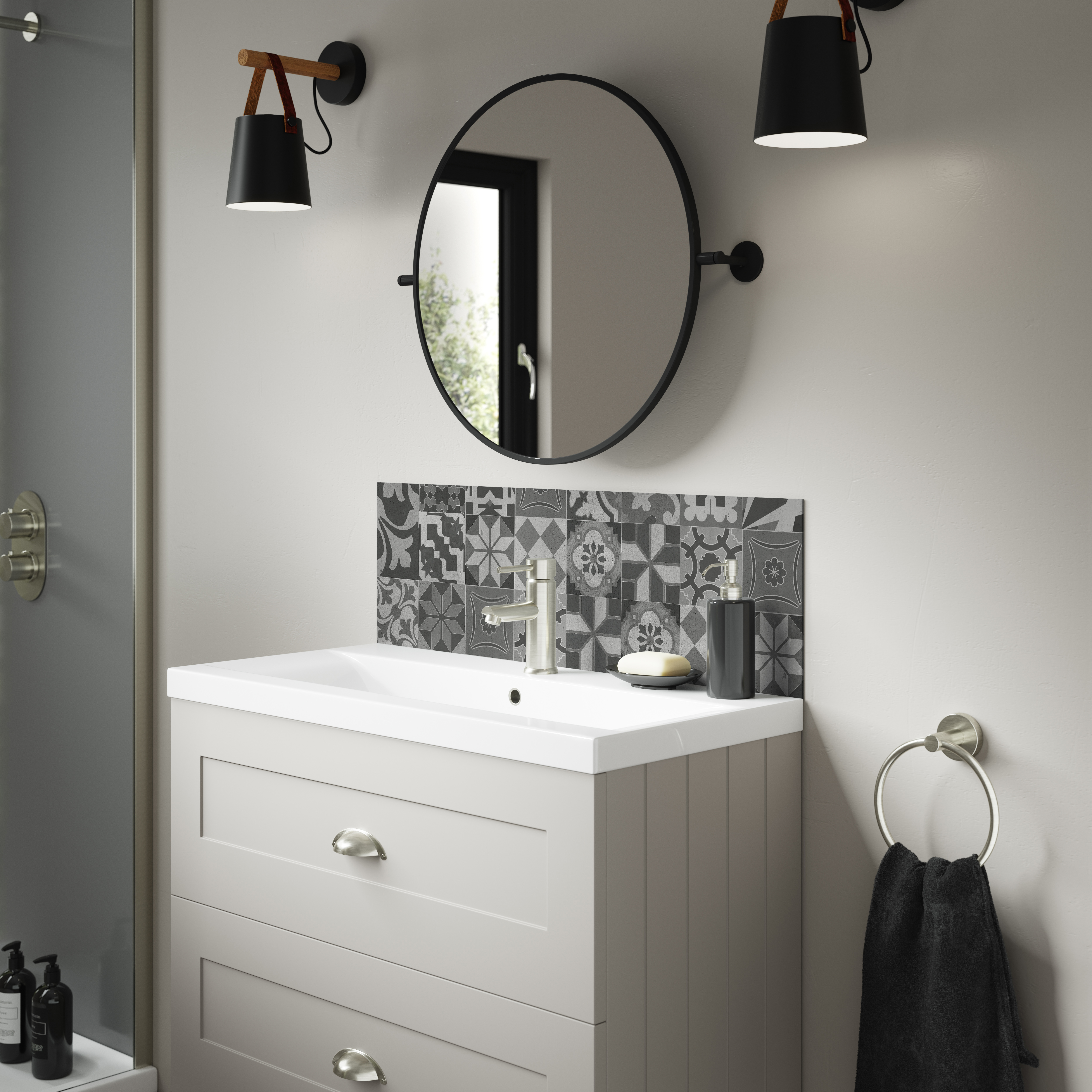 Mermaid Abruzzo Alloy Bathroom Splashback - 800 x 250mm - The Mermaid Bathroom Splashback can help protect the wall area around your bathroom basin from moisture or staining. Manufactured from 4mm aluminium alloy and featuring a modern rustic tile pattern with a matt finish, each splashback is easy to install and ideal to be placed behind sinks due to their durable waterproof finish. No grout is required which results in a high resistance to the build up of mould. They are easy to clean and maintain and also provide a quick way to add a stylish finishing touch to your bathroom or cloakroom.