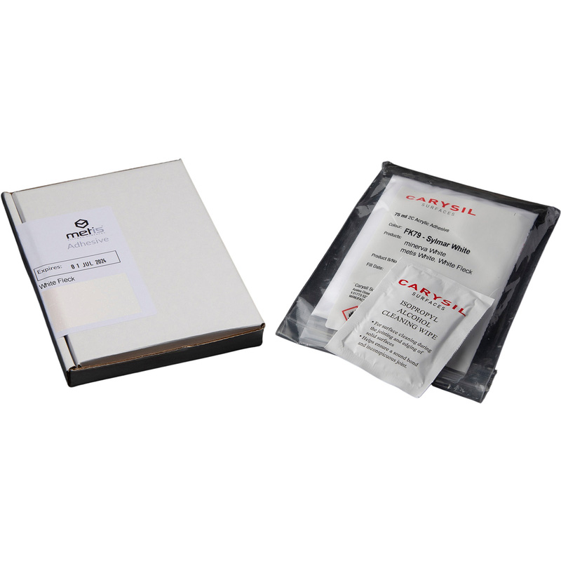 * 75ml sachet of colour-matched adhesive * Two part adhesive sachet * High Odour & Solvent Free * For Indoor Use A 75ml sachet of kitchen worktop adhesive and an isopropyl alcohol wipe to help with preparation - use the wipe for surface cleaning during the jointing and edging of solid surfaces, to ensure a sound bond and an inconspicuous joint.* Two-part 75ml sachet of worktop adhesive* For use with Metis White worktop surfaces* Isopropyl alcohol wipe for preparation* Easy to work with - suitable for indoor use* Each adhesive sachet is enough for one joint | Metis Adhesive Sachet 75ml in White