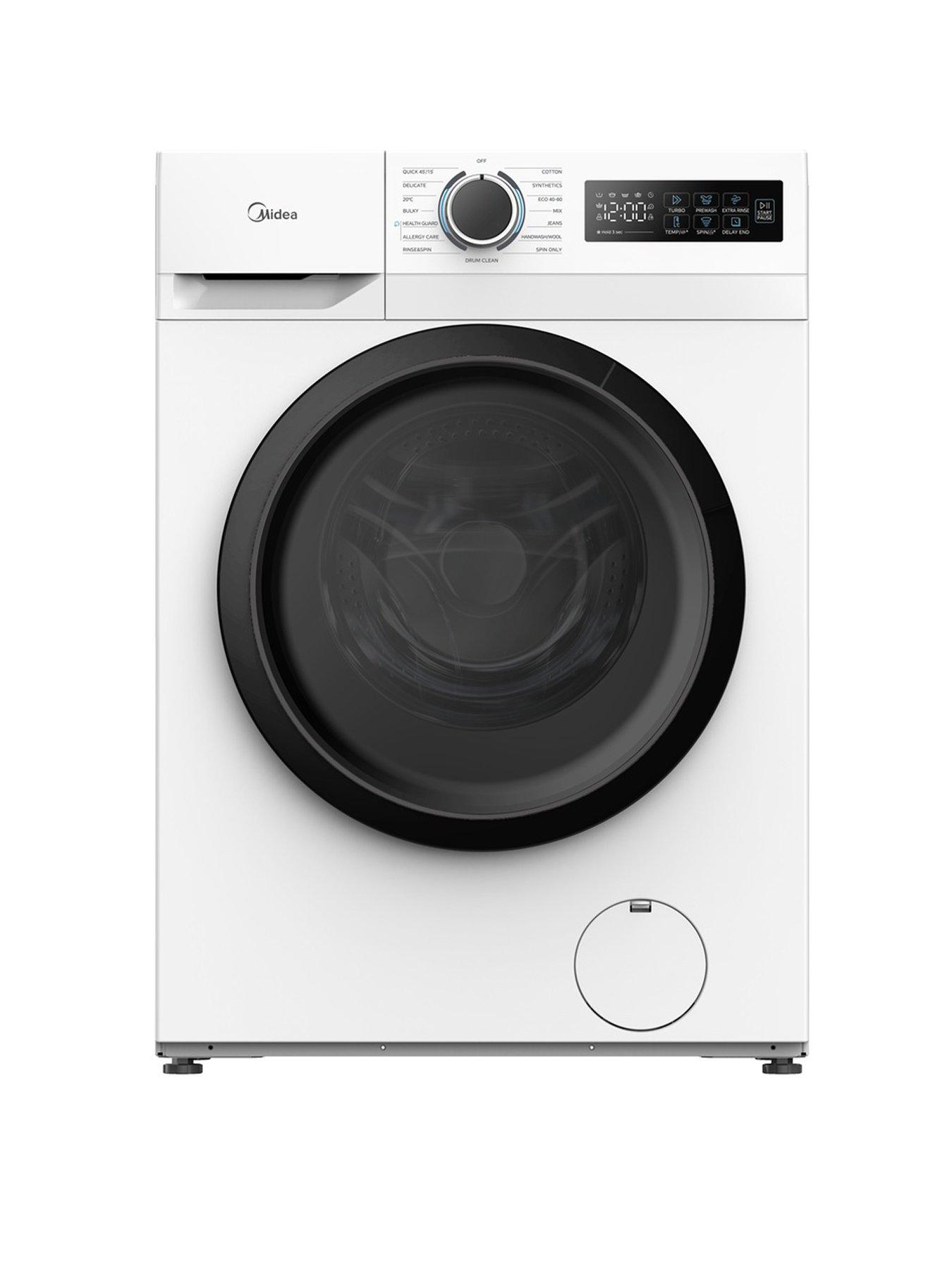 Midea Mf110W80Ba10/W 8Kg Steam Care Washing Machine White Take The Stress Out Of Laundry Day With This High-Capacity Midea Washing Machine. The Extra-Large 8Kg Drum Is A Game-Changer For Big Families, Letting You Power Through More Clothes In Fewer Loads. It'S Packed With Smart Tech Too, Like The Steam Care Function That Helps To Shift Tough Stains While Killing 99.9% Of Bacteria And Allergens. Navigating Your Wash Is A Breeze Thanks To The Intuitive Lunar Dial, And The Inverter Motor Keeps Everything Running Smoothly And Quietly, Even During A High-Speed Spin. Depth: 47.5 Cm Energy Rating: A Power Mix Turbo Wash Strong Wash Health Guard Drum Clean 8Kg Slim Depth 72 Db 1400 Rpm Height: 85 Cm Number Of Programmes: 15 Spin Speed: 1200Rpm Wash Load: 8Kg Width: 59.5 Cm