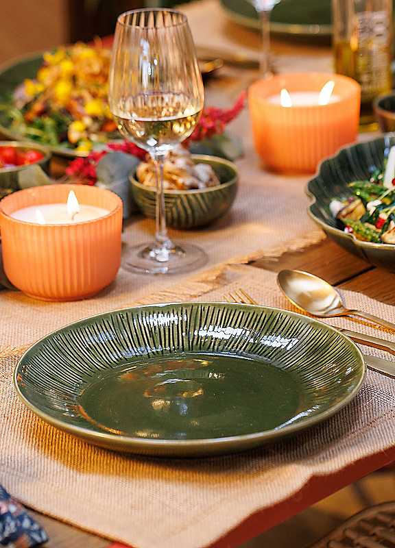 Where botanical elements and statement design combine, the Mikasa Jardin 4-Piece Dinner Plate Set is destined to impress your guests. Part of a collection inspired to bring the outdoors inside, these stoneware plates are finished in an eye-catching green glaze with debossed organic detailing.Versatile to the core, the green dinner plates are perfect for everyday dining, special occasions and alfresco meals. Whether you're piling them with rocket salads or grilled sea bass, they're bound to make a stylish impression against a white backdrop. For easy cleanup, this plate set is dishwasher safe and also comes with a 10-year guarantee.Each dining piece in Mikasa's Jardin collection is subtly different, adding to the uniqueness of the range. Explore the rest of the edit for matching pasta bowls, platters and more.Dimensions approx. 27.7 x 27.7 x 7.1 cm