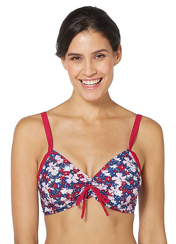 Bikini top in pretty mille fleur print with a decorative front bow. Finished with narrow, adjustable straps and soft cups. Adjustable straps Washable 80% Polyamide, 20% Elastane
