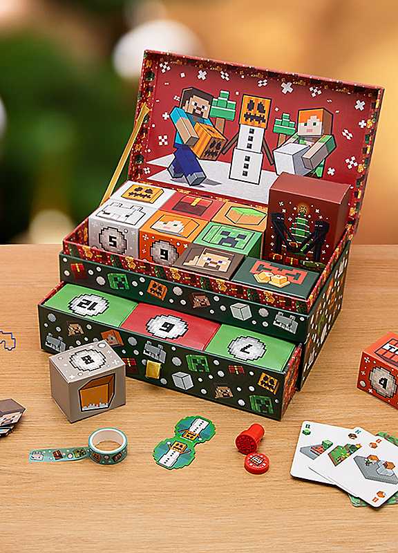 24 x boxes each with a Minecraft themed gift inside, all presented in a beautiful keepsake box.