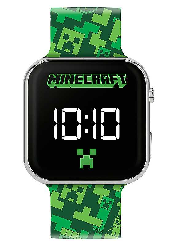 Minecraft LED watch with Digital time design, silver plastic casing, digital light up LED display and fun printed strap design with traditional buckle fastening. Packaged in official branded packaging and comes with one year guarantee.Minecraft printed strapDigital time designLED displaySilicone | silicone strap watch, digital smart watch, digital display watch, digital led watch, digital lcd watch, buckle strap watch, digital hand watch, silicone digital watch, plastic strap watch