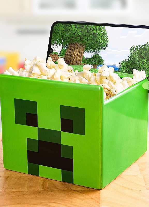 Level up your snack time with the Minecraft Creeper Streaming Snack Bowl. Featuring a built-in phone stand, you can easily stream your favourite show hands-free while tucking into a tasty treat. This green 2-in-1 snack bowl is perfect for gamers who love to munch a snack and watch something at the same time. Featuring a built-in phone stand, you can easily stream your favourite shows hands-free while tucking into a tasty treat. It will make a great addition to your next cosy night in - just sit back and snack away!Not suitable for dishwasher or microwave use.The Minecraft Creeper Streaming Snack Bowl is a must-have for snack-loving gamers.