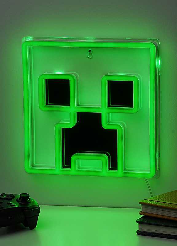 Level up your wall decor with this Creeper LED Neon Light. With a vibrant green glow, it adds a playful touch to any space and brings one of Minecraft's mobs to life. The 25cm (9.4in) tall wall-mountable light captures the iconic Creeper from Minecraft. With a vibrant green glow, it adds a playful touch to any space and brings one of the game's mobs to life.Power your light with the attached USB cable.The Creeper LED Neon Light will make a great addition to any gamer's home. | usb wall light, decorative wall light, neon light lamp, led night light, wall mounted light, neon led lamp, gaming neon lights, neon night light, gaming room lights, wall night light