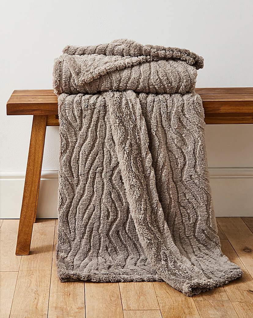 The Textured Wavy Fleece Throw features a subtle wave like texture adding a decorative accent to your sofa or bed. Size(cm): 120X150. Material: 100% polyester/flannel. 30 Degree Wash, Do not bleach, Cool tumble dry, Do not iron, Do not dry clean.