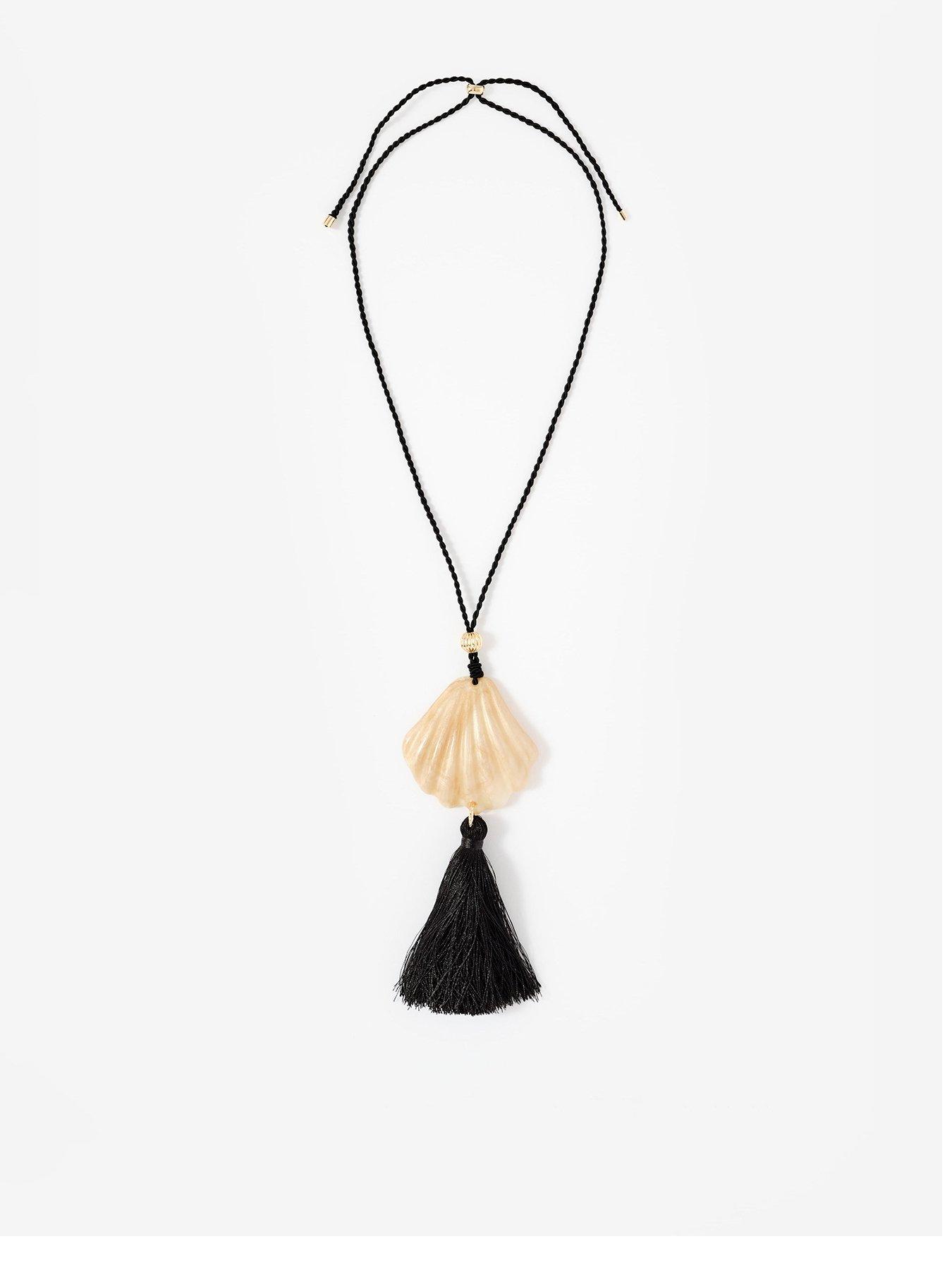 Mint Velvet Shell Resin Tassel Pendant Resin Shell Tassel Pendant Rope Necklace With Clasp Fastening, Material Content: Main, 45% Acrylic, 50% Polyester, 5% Brass