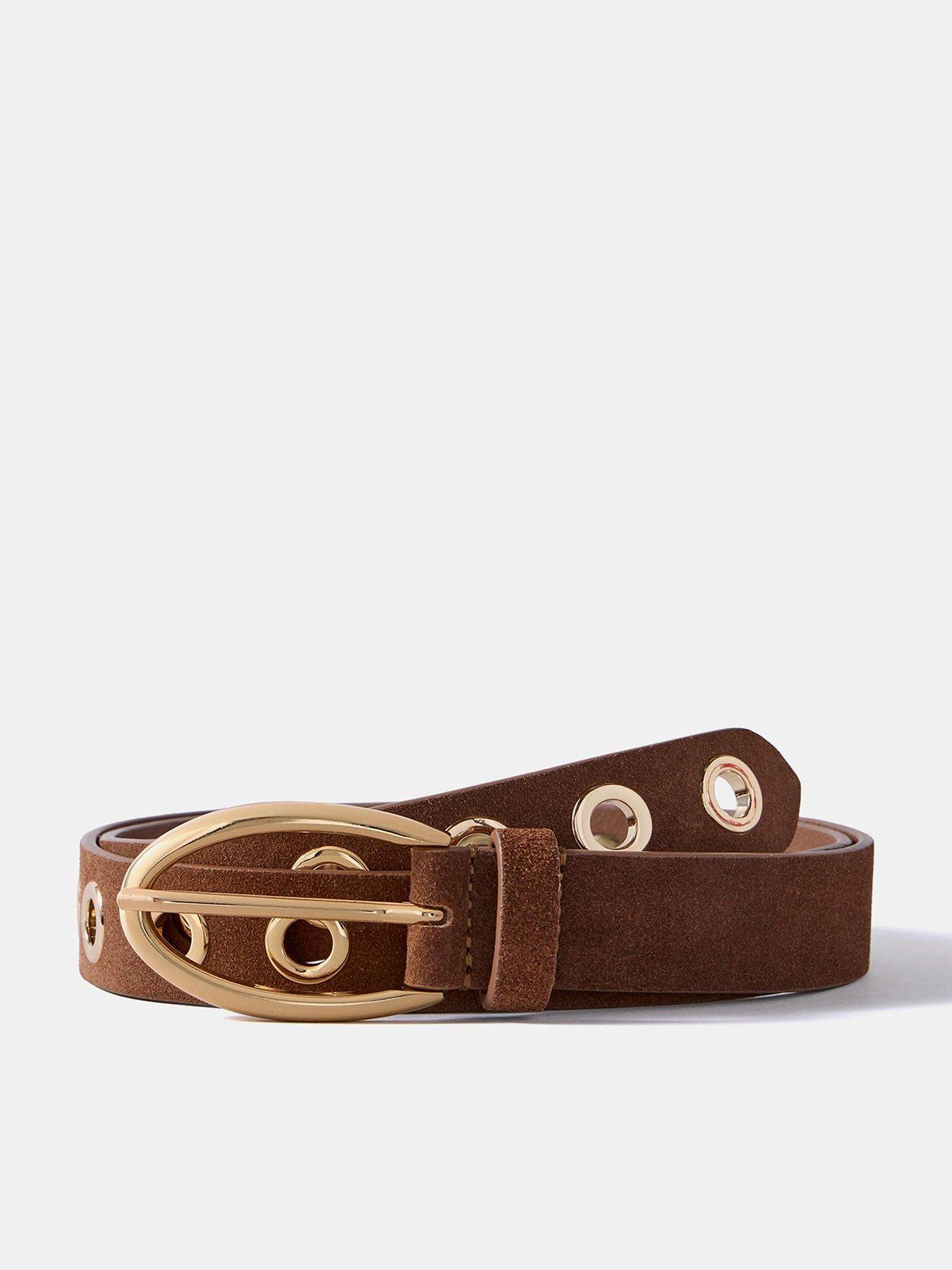 Mint Velvet Suede Eyelet Belt - Tan - L