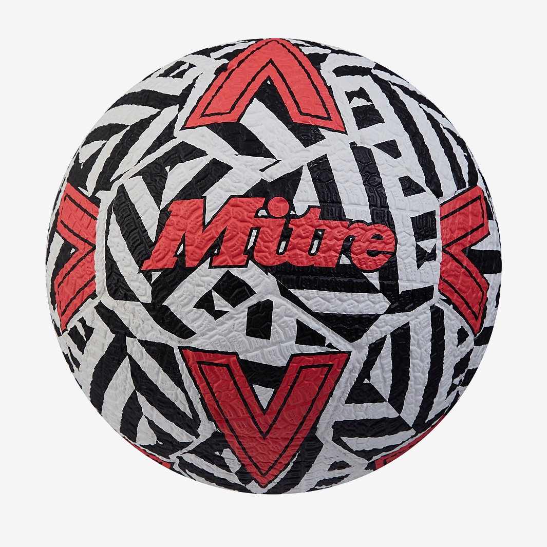 Take your skills from the pitch to the pavement with the Mitre 24 Street Soccer in WhiteBlackBib Red, a hardwearing football perfect for use on the training pitch. A classic 32panel shell is machinestitched for superb durability and shape retention, making it ideal for relentless use on hard surfaces like tarmac and concrete. The white base is enhanced with Mitres iconic chevron graphics and a striking dazzle camo design to help you keep track of play on any surface. Mitre 24 street football Machinestitched 32panel construction Requires inflation