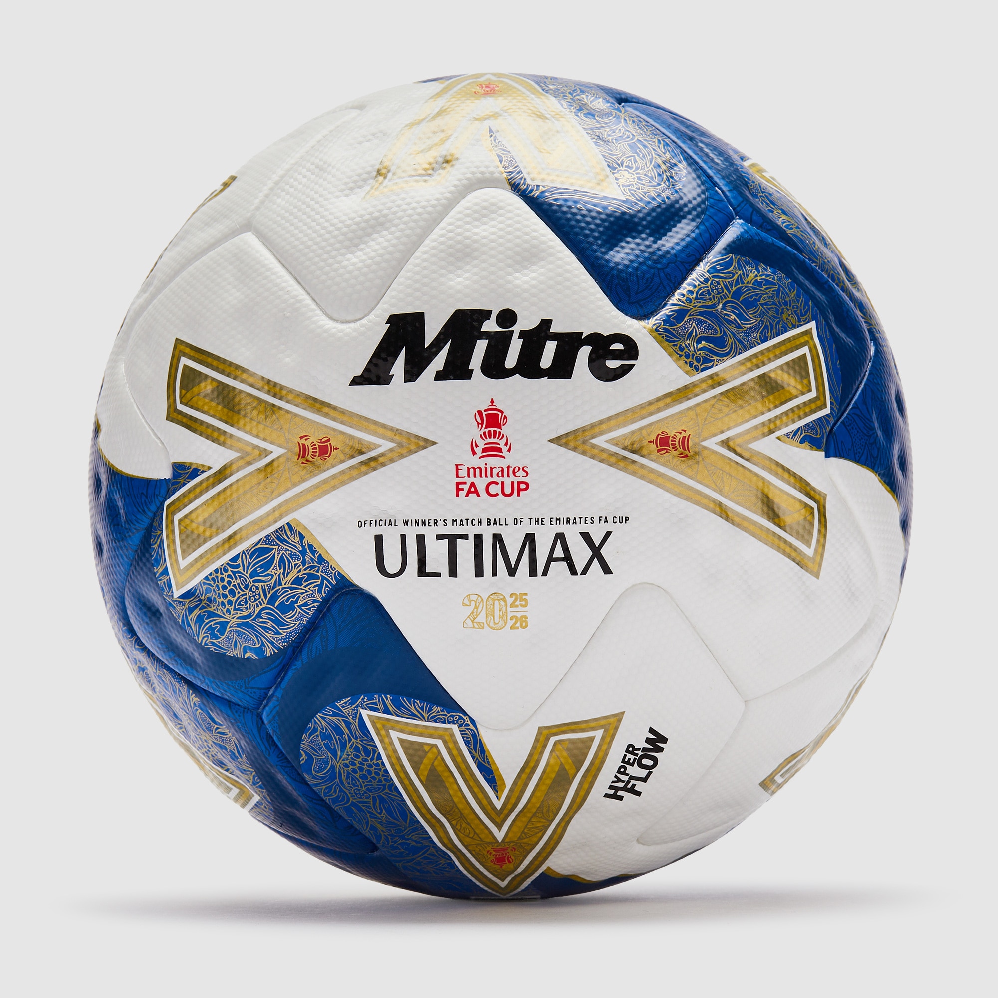 Celebrate the 145th edition of the oldest football competition in the world with the Mitre FA Cup 2526 Winners Ultimax Pro Football in WhiteGoldBlueRed. FIFA Quality Pro certified, this prolevel football guarantees perfect circumference, weight, rebound and water resistance. Used by firsttime FA Cup winners and reigning champions Crystal Palace as they fight to retain their title, this ball allows you to practice and play like the very best. A classic white base is enhanced with subtle reflective gold Mitre chevron detailing that pays tribute to the 202425 cup winners, and striking blue contrast graphics add an eyecatching flourish that helps you to keep track of play on any surface, come rain or shine. Official FA Cup branding ensures that you feel like a pro with the ball at your feet. The FIFA Quality Pro certification verifies that the ball has passed rigorous tests on circumference, weight, rebound and water resistance, ensuring a professionalquality feel. A unique fourpanel shell provides a soft, consistent touch, so you can take your technique to a new level. Hyperfoam technology uses high elastic cushioning to help you put more power into your strikes and launch the ball from range, while the debossed Hyperflow surface manipulates airflow to enhance stability as the ball travels through the air and give your shots and passes more accuracy. Thermal bonding offers superb durability and reduces water uptake, so the ball maintains its shape for longer, no matter how intense your training sessions or games are. Mitre 202526 FA Cup Winners Ultimax Pro ball Used by 202425 FA Cup winners Crystal Palace from their entry in the third round of the competition Official FA Cup branding FIFA Quality Pro certification Hyperfoam Hyperflow Hyperseal Thermally bonded construction 30 EPDM foam, 29 rubber, 24 PU, 16 polyester Size 5 Suitable for grass or astro surfaces Requires inflation