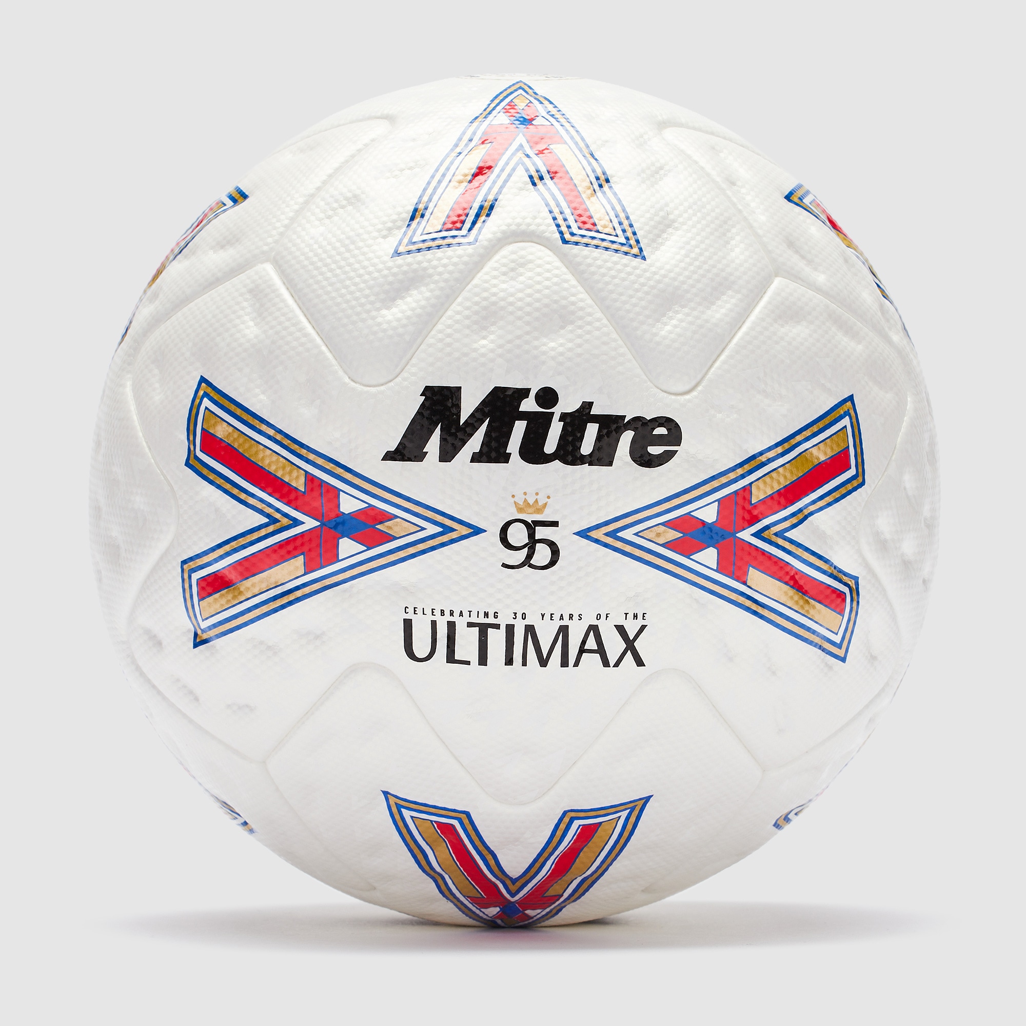 Celebrate 30 years of one of the most iconic balls in modern football with the Mitre Ultimax Pro 30th Anniversary Football With Packaging in WhiteBlue RedGold, a special commemorative football made in tribute to the Ultimax. FIFA Quality Pro certified, this prolevel ball guarantees perfect circumference, weight, rebound and water resistance. Designed in celebration of the 30th anniversary of Mitres Ultimax range memorably used as the official match ball of the Premier League back in its early years from 1995 to 2000, and in the Community Shield and FA Cup since 2018 the specialedition Mitre Ultimax Pro 30th Anniversary Football pays tribute to three decades of football memories, from David Beckhams legendary halfway line goal against Wimbledon to Youri Tielemans gamewinning long shot in the FA Cup final and Crystal Palaces fairytale victory in 2025. The white, blue, red and gold Mitre chevrons evoke the colourway of the very first Mitre Ultimax, and 95 graphics are adorned with a golden crown that nods to the original Premier League logo. A bold new 6panel shell is thermally bonded with Hyperseal technology to deliver outstanding consistency and shape retention and ensure that the ball doesnt absorb water during wetweather matches. The extrathick Hyperfoam midlayer uses highelastic cushioning to help you put more power into your strikes and launch the ball with ease, while debossed Hyperflow grooves at the surface manipulate airflow to enhance stability as the ball travels through the air and give your shots and passes more accuracy. The FIFA Quality Pro certification verifies that the ball has passed rigorous tests on circumference, weight, rebound and water resistance, ensuring a professionalquality feel. Mitre Ultimax Pro 30th anniversary football Designed in celebration of 30 years of the Ultimax Inspired by the original 1995 Ultimax Premier League ball Special commemorative graphics and packaging FIFA Quality Pro certification Hyperfoam technology Hyperflow debossed groove technology Hyperseal technology Sixpanel, thermally bonded construction Recycled polyester backing and ePU shell reduce environmental impact Requires inflation