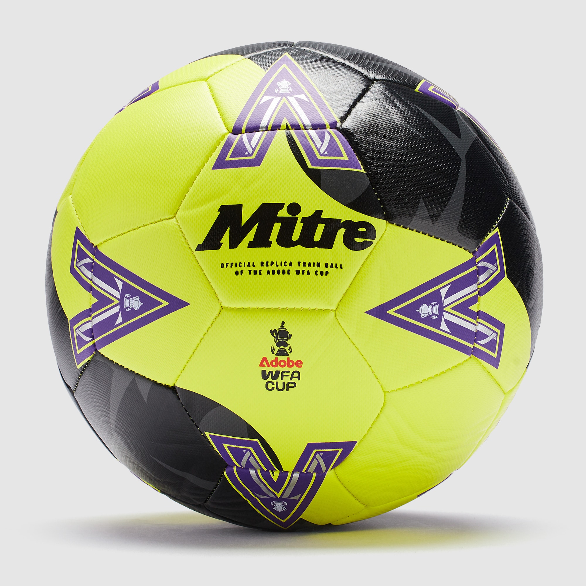 Celebrate the 56th edition of the most prestigious cup competition in English womens football with the Mitre Womens FA Cup 2526 Training Football in Vibe LimePurpleBlack, a highquality training ball based on the official womens FA Cup football. Based on the balls used by 514 teams from up and down the English football pyramid from current cup holders and reigning WSL champions Chelsea to teams from outside the top 5 tiers of the womens game in highstakes knockout games, the Womens FA Cup 202526 training ball allows you to practice and play like the very best. A vibrant Vibe Lime base is enhanced with eyecatching black, purple and blue contrast accents to create an eyecatching look that helps you to keep track of play on any surface, come rain or shine. Official Womens FA Cup branding ensures that you feel like a pro with the ball at your feet. Highperformance features create a perfect playing experience to help you get the best out of your game, whether youre honing your skills in training, playing 5aside with friends, or just having a kickabout in your back garden. A foam back lining provides easy comfort while you play, and cushioning gives you a soft, consistent touch off your instep or outstep. The hardy shell and bladder provide superb durability, so you dont have to worry about damage or deflation through relentless training. Mitre 202526 Womens FA Cup training ball Official Womens FA Cup branding Foam back lining Durable shell and bladder 55 natural rubber, 18 TPE foam, 16 polyester, 11 PU Suitable for grass and astro surfaces Requires inflation