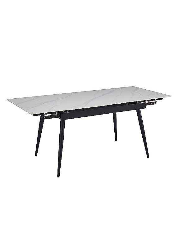 This classic extending ceramic dining table provides comfort and style and will fit in with most colour schemes. The table has two pop out leaves, extending from 1.2m to 1.8m. The underframe is made from metal with a black paint finish; adjustable feet are also fitted into each leg for uneven floors. Enhance your living space with this stylish and functional table which combine aesthetics with practicality.Overall Assembled Dimensions: H76 x W120-180 x D80cmWeight of Product: 56kgSpecifications Material: Ceramic, MetalSuggested Number of People for Assembly: 1/2Tool Kit Included: Yes Self-AssemblyManufacturer's 1 year guaranteeProduct Care: Wipe clean only, avoid household cleaners/abrasivesPlease remember to measure your available space before ordering. If using on an un-carpeted floor we recommend rubber or felt protection pads be used under the legs to avoid damage to your floors.