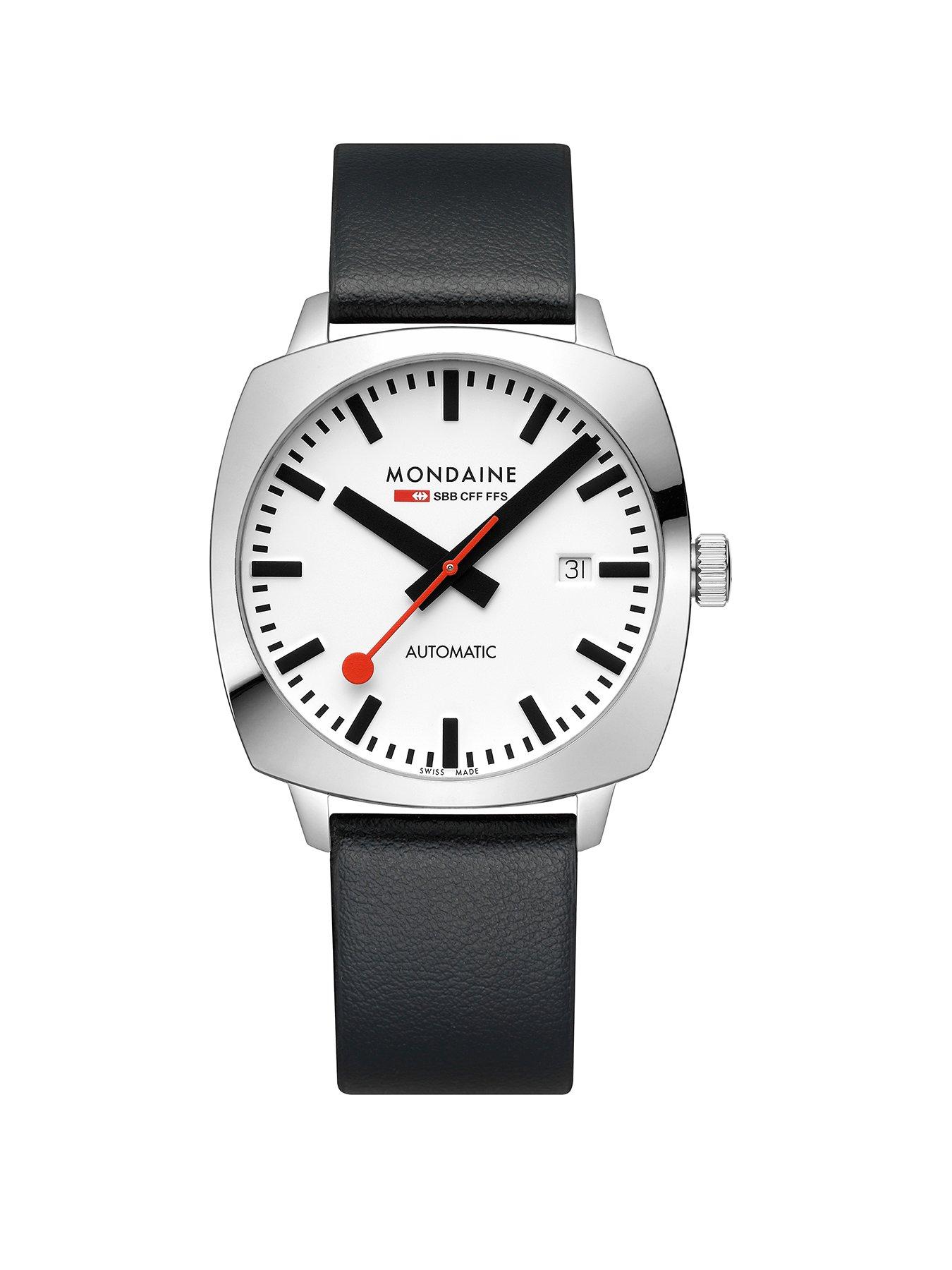 Mondaine Mens Cushion Automatic 39Mm Watch In Grape Leather Size & Fit Available In One Size Details Mens Cushion Automatic 39Mm, Grape Leather By Mondaine Black The Cushion Automatic Is Inspired By A Vintage Design With A Timeless Case That Pays Homage To Mondaines Heritage. The 39Mm Cushion-Shaped Stainless Steel Case Is Paired With A White Dial And Signature Red Second Hand. Powered By A Swiss Automatic Movement With A 38-Hour Power Reserve, This Watch Operates Without A Battery, Reducing Electronic Waste. The Anti-Reflective Sapphire Crystal Enhances Durability, While The Patented Backlight Technology Ensures Readability In The Dark. Featuring A See-Through Case Back And A Vegan Grape Leather Strap, The Cushion Automatic Is A Perfect Fusion Of Heritage And Craftsmanship. 24Hr Display: N Depth: 11.5 Mm Height: 11.5 Mm Width: 39 Mm Case Diameter (In Cm): 3.9 Case Height (In Cm): 1.2 Case Length (In Cm): 3.9 Case Width (In Cm): 3.9 Fastening Type: Bracelet Glass: Sapphire Strap Material: Stainless Steel Mesh Water Resistant: Y Time Date Sellita Sw200-2 Swiss Quartz Exhibition Caseback 100M/330 Feet/10 Atm Water Resistant Backlight (Superluminova Coating On Back Of Hour And Minute Hands) 316L Stainless Steel Milanese Bracelet Double Domed Sapphire Crystal Glass With Anti-Reflective Coating Swiss Made 24Hr Display: N Depth: 11.5 Mm Height: 11.5 Mm Width: 39 Mm Case Diameter (In Cm): 3.9 Case Height (In Cm): 1.2 Case Length (In Cm): 3.9 Case Width (In Cm): 3.9 Fastening Type: Bracelet Glass: Sapphire Strap Material: Stainless Steel Mesh Water Resistant: Y Time Date Sellita Sw200-2 Swiss Quartz Exhibition Caseback 100M/330 Feet/10 Atm Water Resistant Backlight (Superluminova Coating On Back Of Hour And Minute Hands) 316L Stainless Steel Milanese Bracelet Double Domed Sapphire Crystal Glass With Anti-Reflective Coating Swiss Made