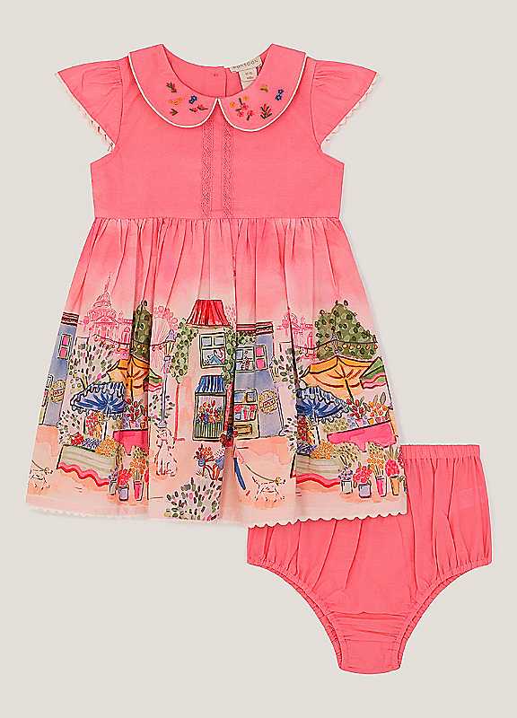 Monsoon Baby London Skyline Dress & Underwear Set - Pink - Size 0/3MONTHS