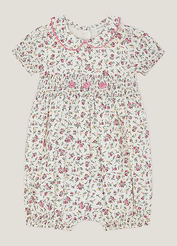 Monsoon Baby Rose Smocked Romper - Ivory - Size 0/3MONTHS