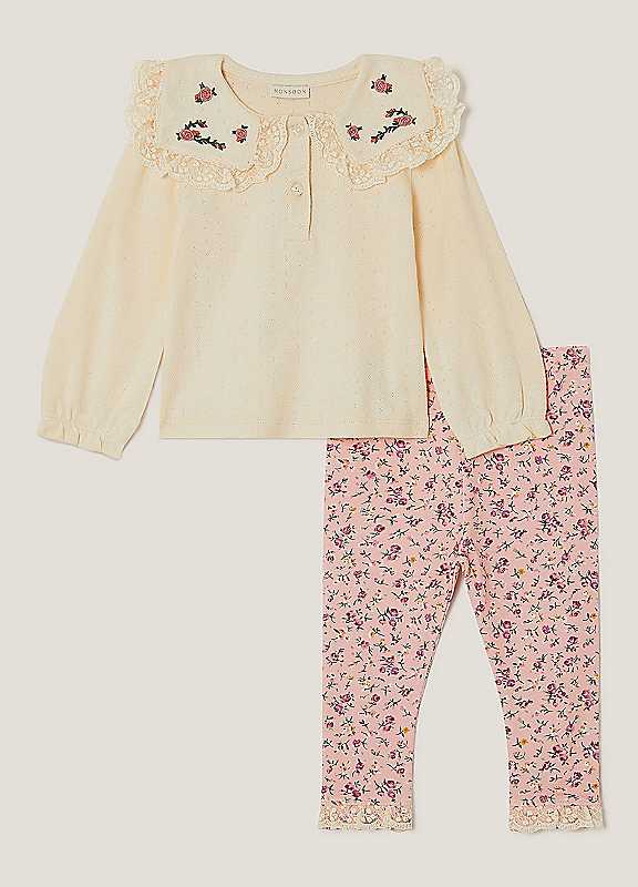 Monsoon Baby Rosie Top & Floral Leggings Set - Pink - Size 0/3MONTHS