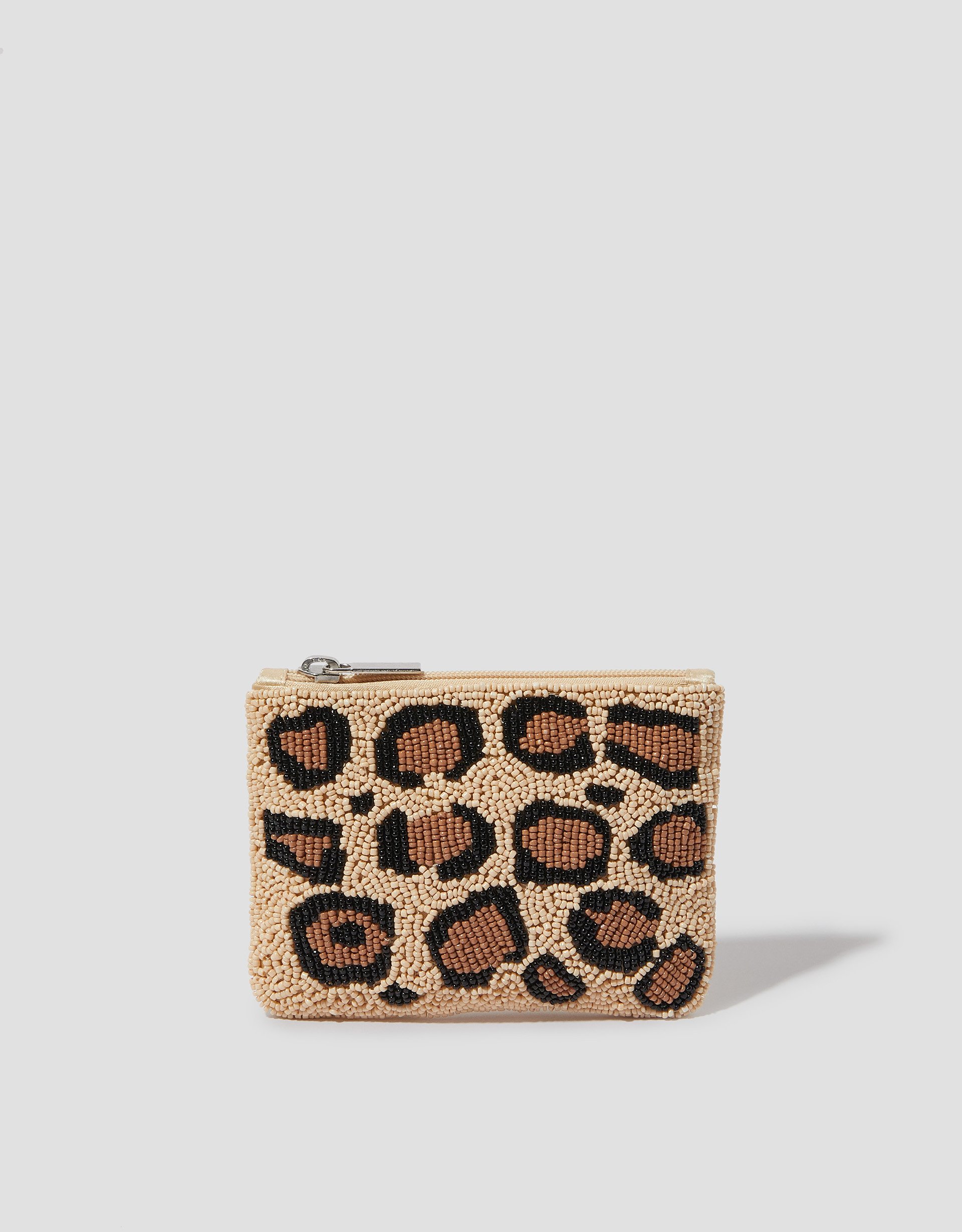 Spotted: cute and compact accessories. Embellished with beads in a chic leopard print, this purse is perfect for storing small treasures and spare change in your everyday bag. Fastens with a zip.