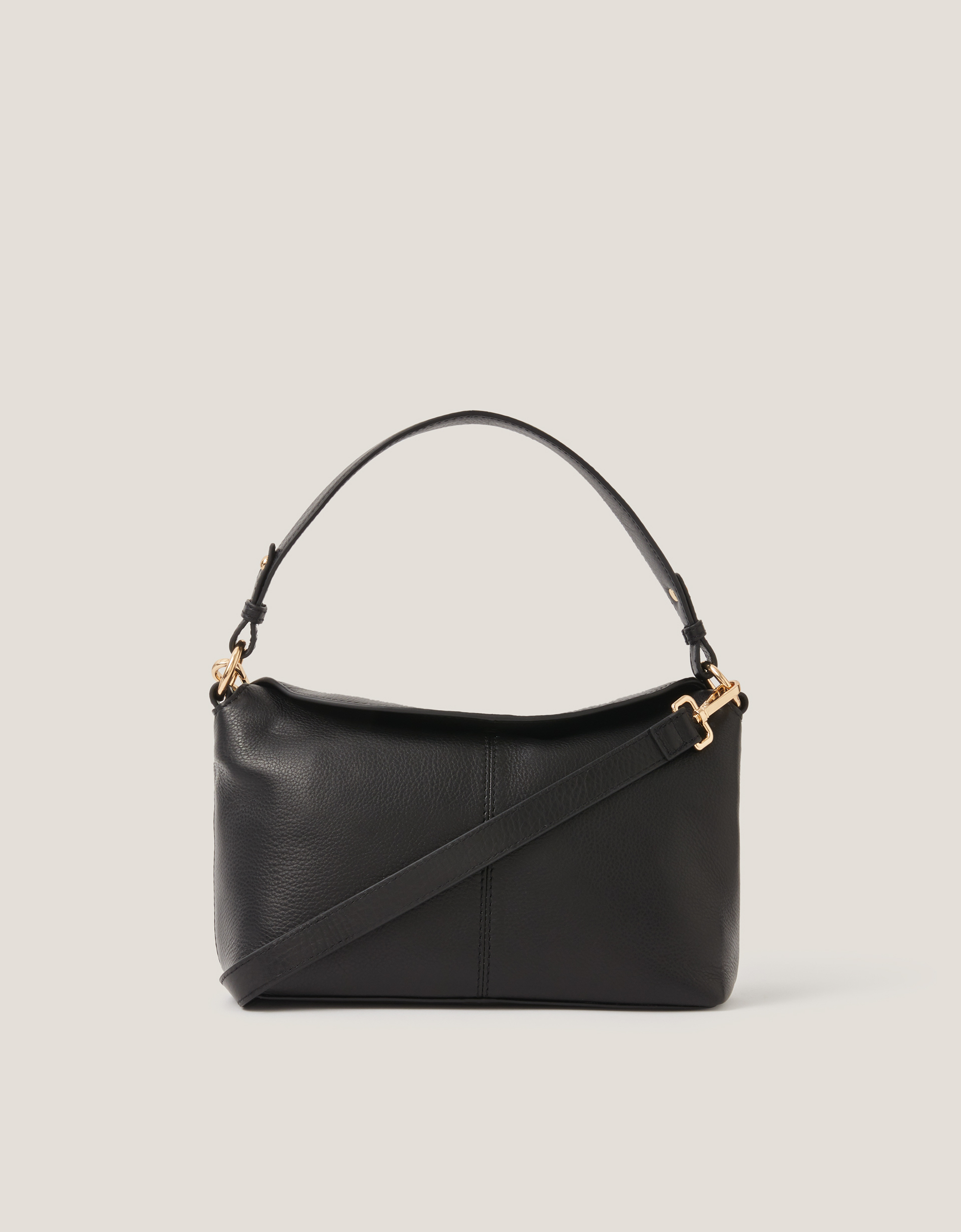 Like you, she's versatile. Designed in a smooth, black leather that goes with everything, this bag features a top handle and optional strap to style like a crossbody. Open the discreet magnetic button fastening to find a zip pocket inside to keep your small essentials safe.