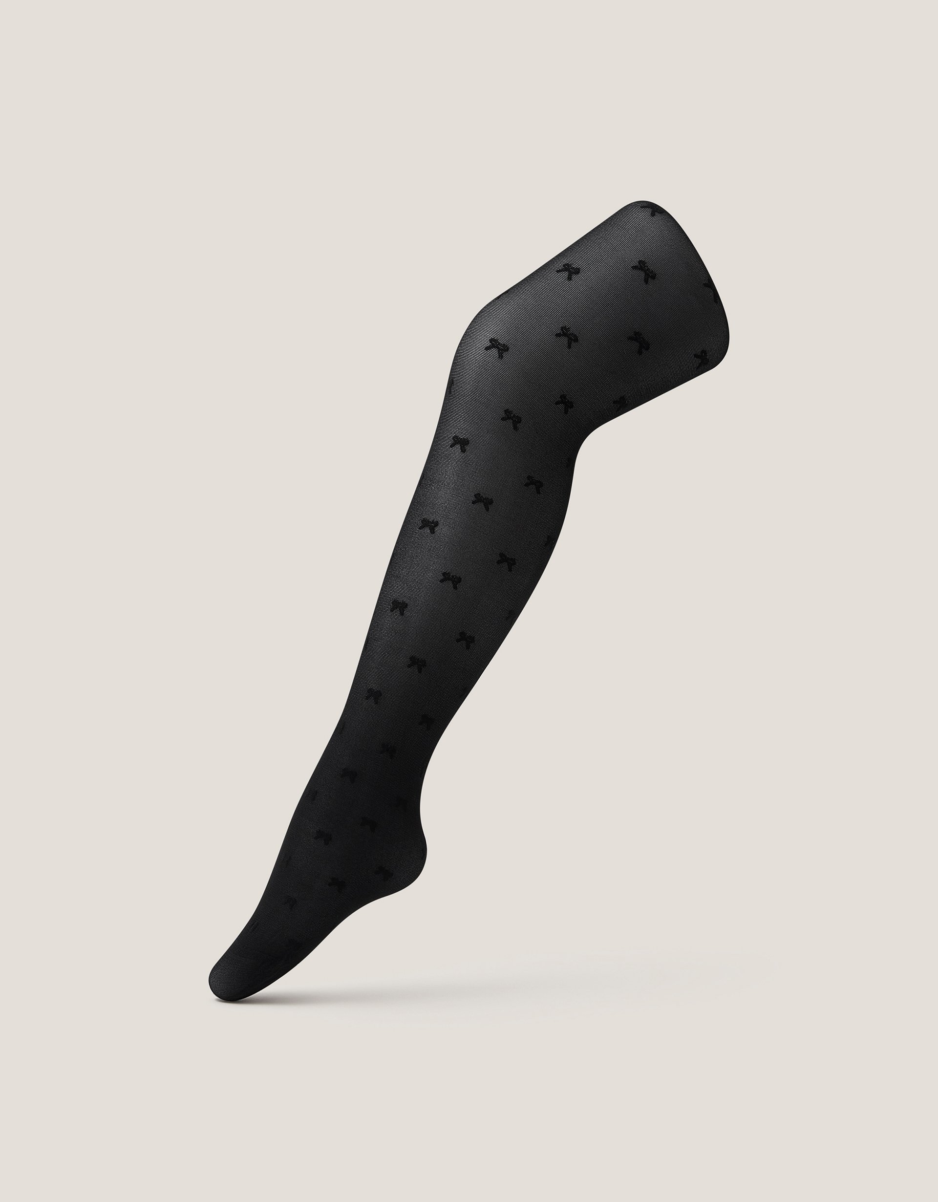 Fool-proof. Something different to their everyday plain tights, this pair is designed in semi-sheer, stretchy nylon with pretty bows for texture. Ideal to style alongside party dresses and two-pieces. Black
