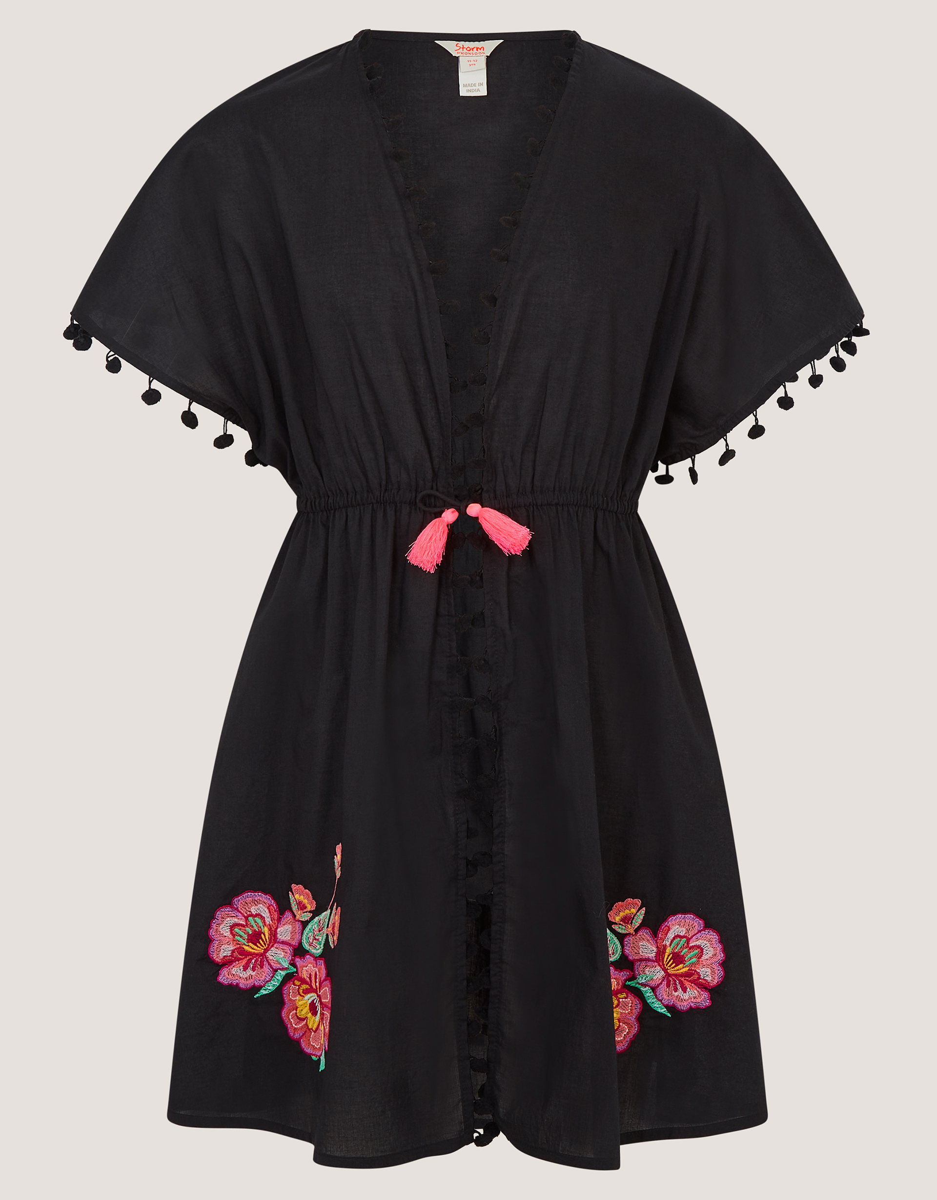 Monsoon Black Floral Embroidered Kaftan Printed, in Size: 9-10 Years