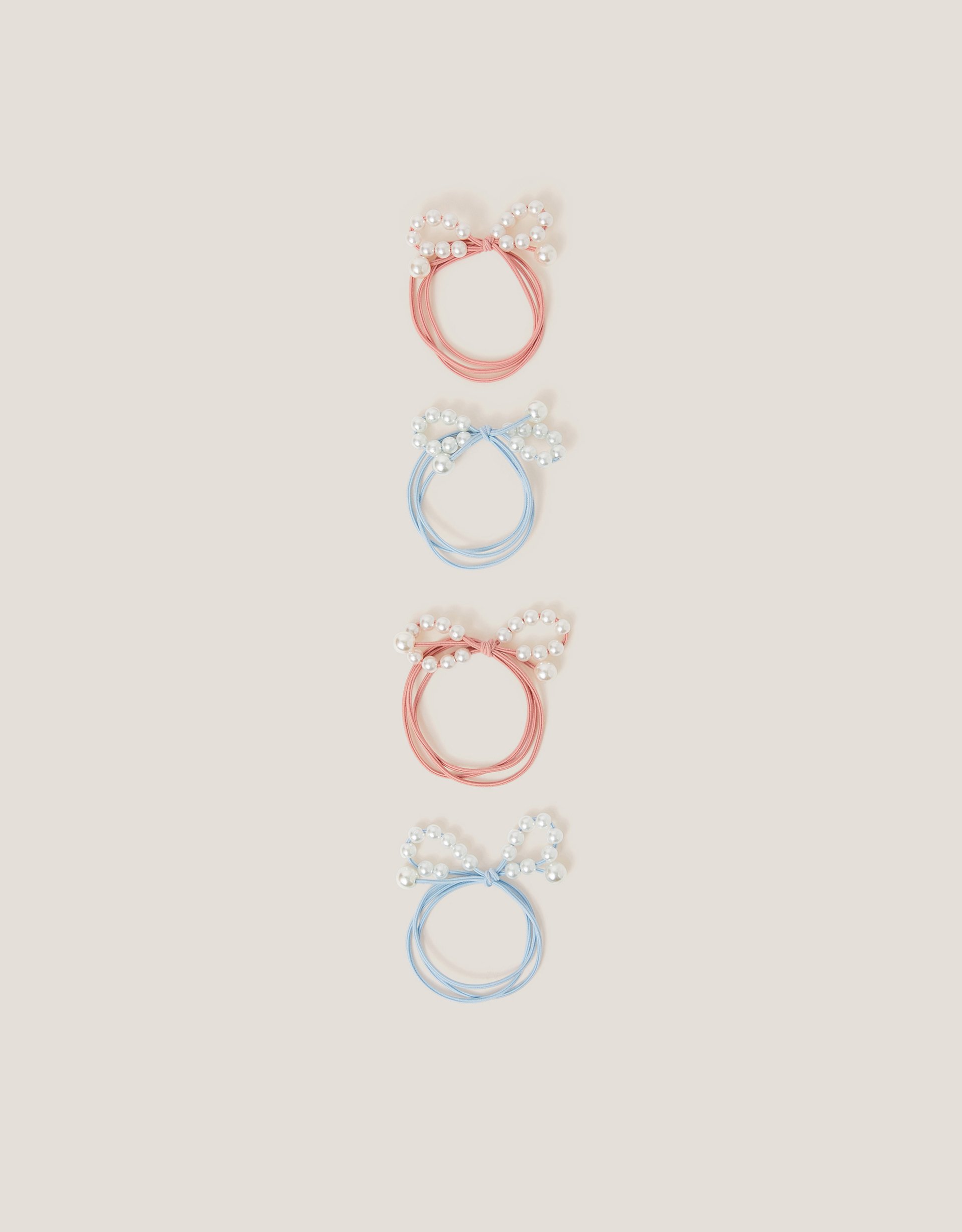Too cute for words! These adorable hair bands are made from blue and pick elastic with pearly beaded bows to finish. Perfect for adding a pop of colour (and sparkles) to their everyday hairstyles. Four included.Warning! Choking Hazard—Small parts. Not suitable for children under 3 years old.