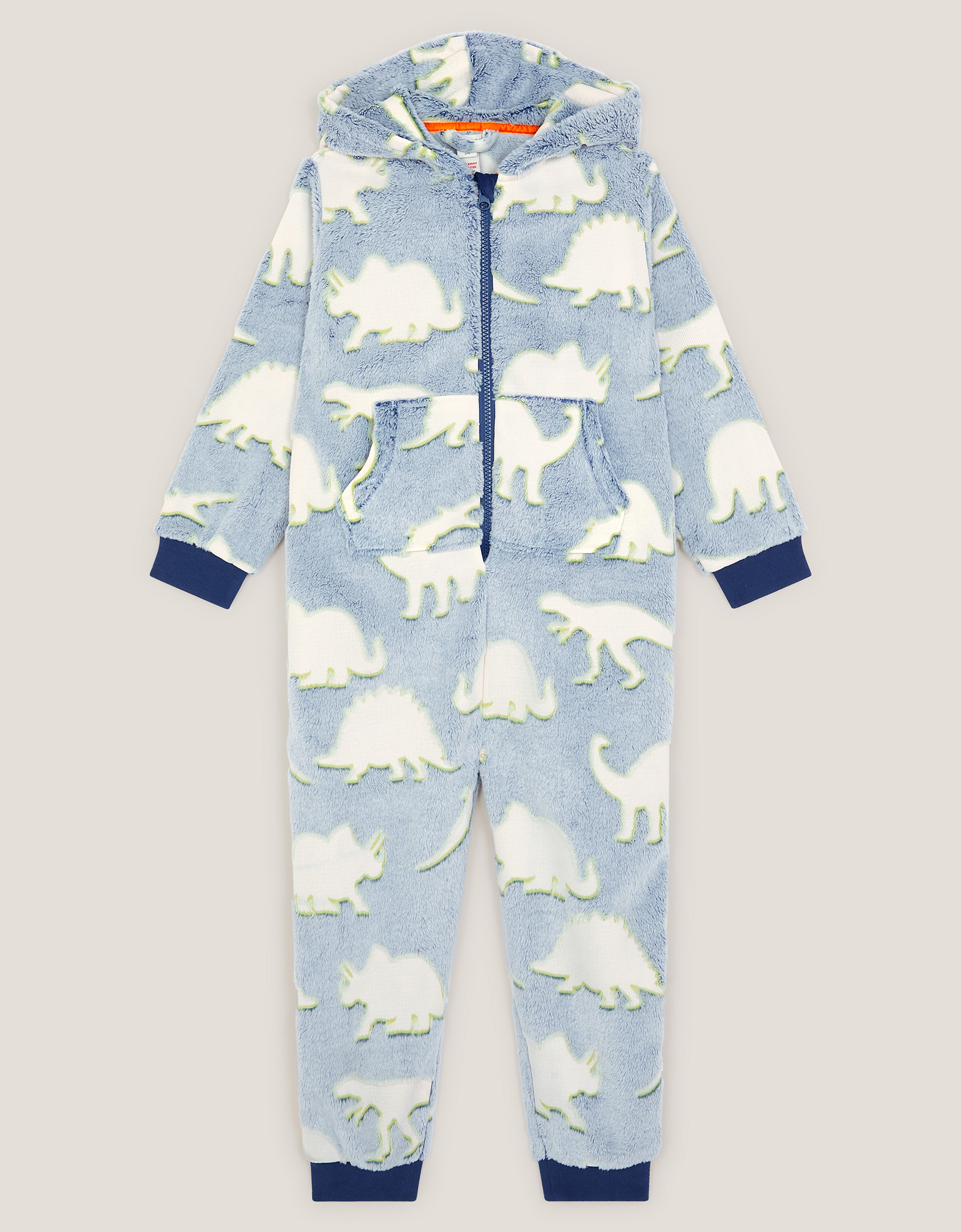 Monsoon Blue/white Super-soft Glow in the Dark Dinosaur Onesie Blue, Printed, Size: 11-12 Years