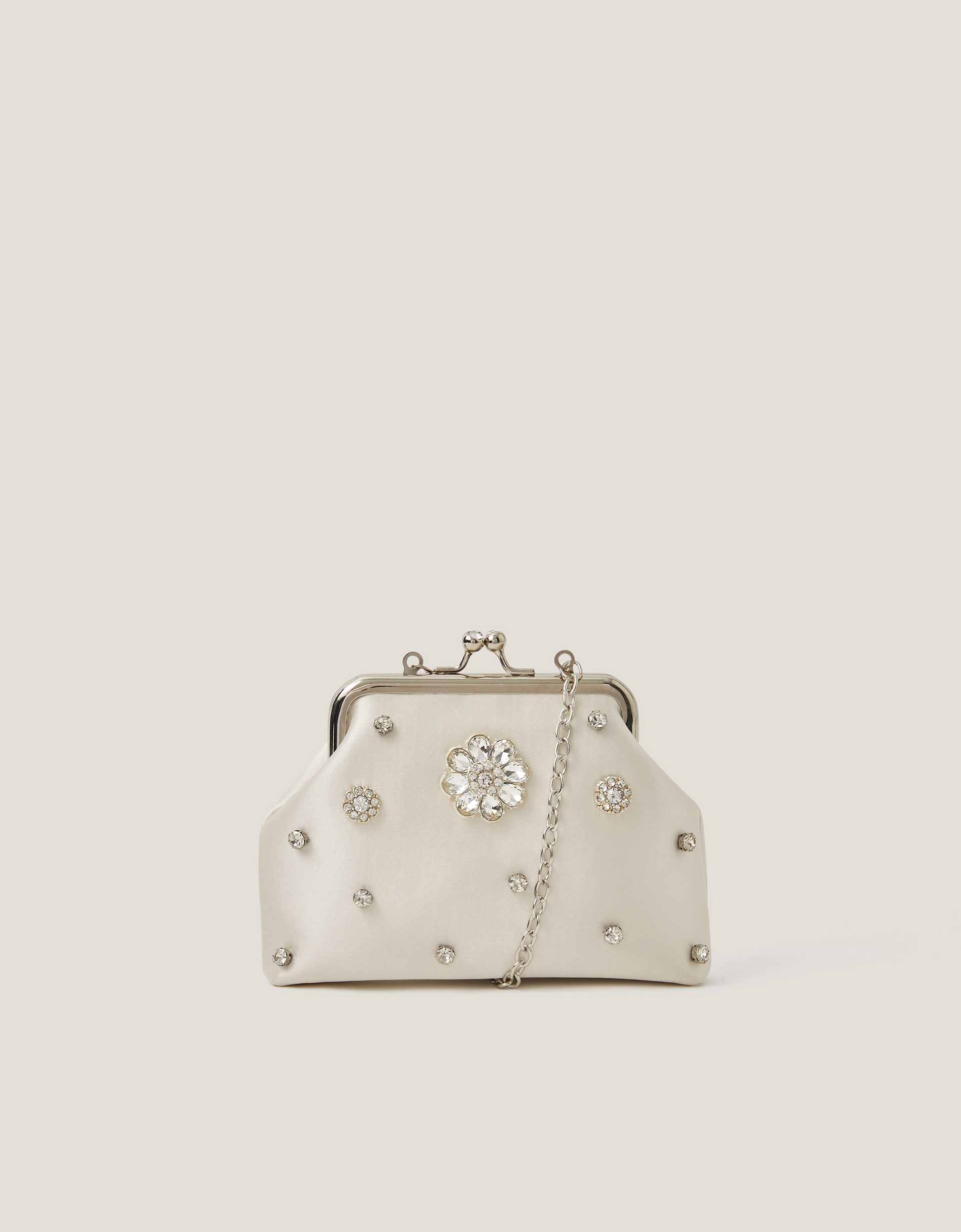 Monsoon Cream Bejewelled Flower Clip Frame Bag, in Size: 13x3x15cm
