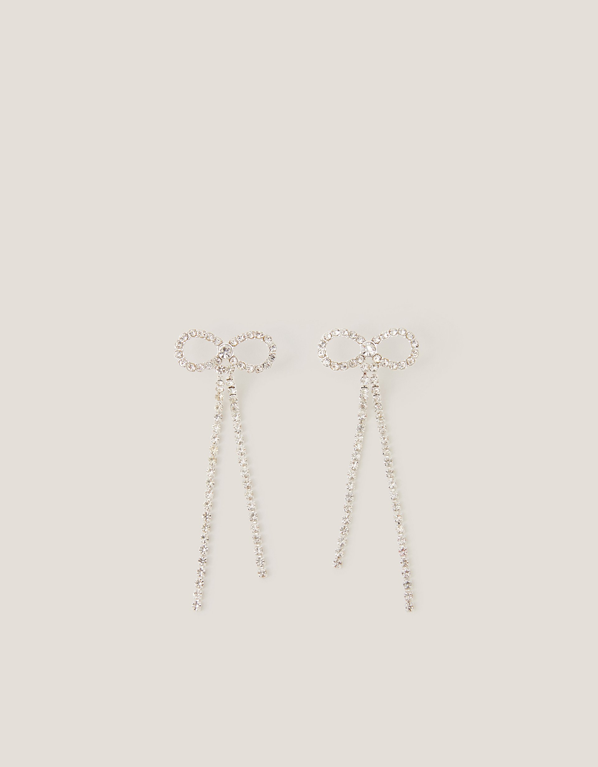 Sparkle season. The perfect endnote to all your party looks, these dazzling drop earrings are shaped like a bow with diamanté cupchains dangling from the stud profile. Love the look? Pair with the matching necklace.Non-refundable.
