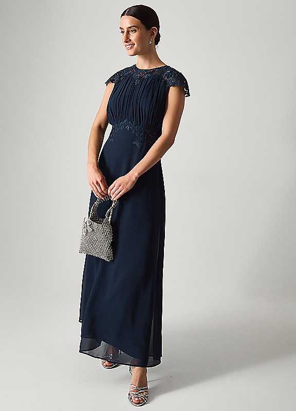 Monsoon Elodie Lace Chiffon Bridesmaid Dress - Navy - Size 14